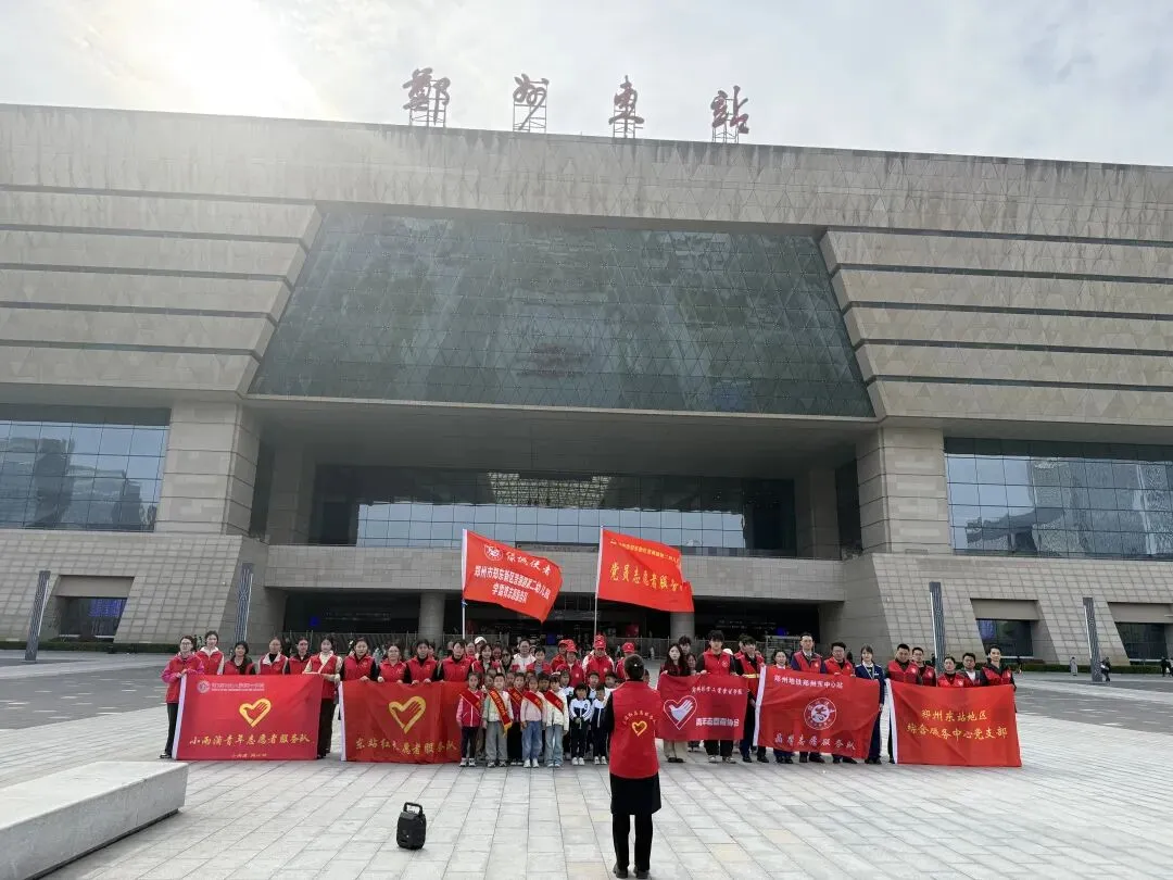 三月春风拂枢纽,雷锋精神润人心。为深入践行“奉献、友爱、互助、进步”的志愿精神,充分发挥郑州东站“米”字形高铁枢纽站城市文明窗口作用,近日,郑州东站地区综合服务中心“东站红”志愿服务队牵头,以党建引领网格化高效能治理体系为依托,联合郑州轨道交通运营有限公司、郑州公交集团有限责任公司、郑东新区普惠路第二幼儿园、郑东新区龙湖第一幼儿园、河南开放大学志愿服务队、郑州航空工业管理学院志愿服务队等多家单位,在郑州东站共同开展“大手牵小手·传承雷锋精神”雷锋月志愿服务活动。引领孩子们践行善举、传递善意,让雷锋精神在代代相传中焕发光彩,以实际行动传递温暖,擦亮城市文明底色,传递新时代志愿温度。