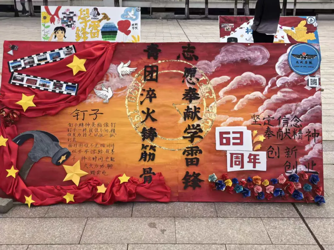 三月春风暖,精神永流传。郑州航院2026年“雷锋志愿服务月”—“青春志愿,文明同行”主题展板评比活动于3月26日在东校区中心广场举行。各学院青年志愿者团精心构思、用心创作,以方寸展板为载体,讲述雷锋故事,传递志愿温暖,生动诠释了新时代校园中的雷锋精神。