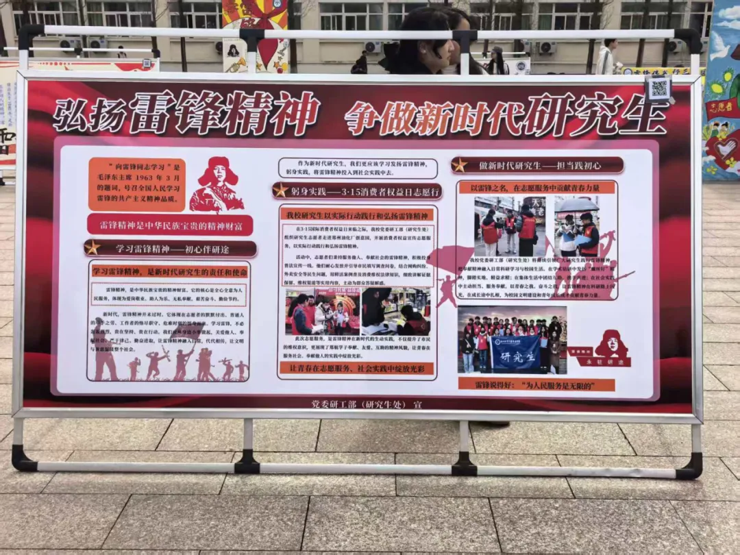 一幅幅展板主题鲜明、设计精巧,既有对雷锋精神的时代诠释,也有各学院志愿服务的真实记录,吸引师生驻足观看、交流互动。