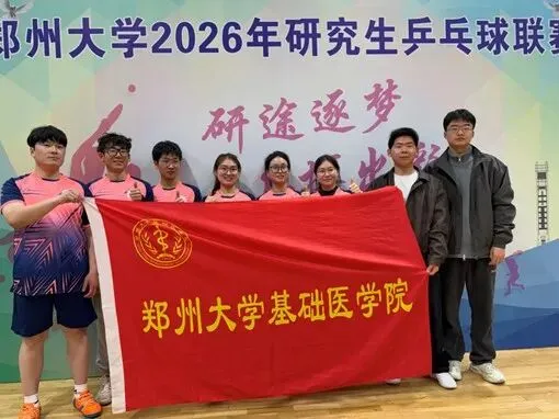 3 月 22 日,郑州大学 2026 年研究生乒乓球联赛在主校区北体育馆火热开赛。基础医学院代表队凭借扎实的功底、默契的配合,成功跻身十六强。