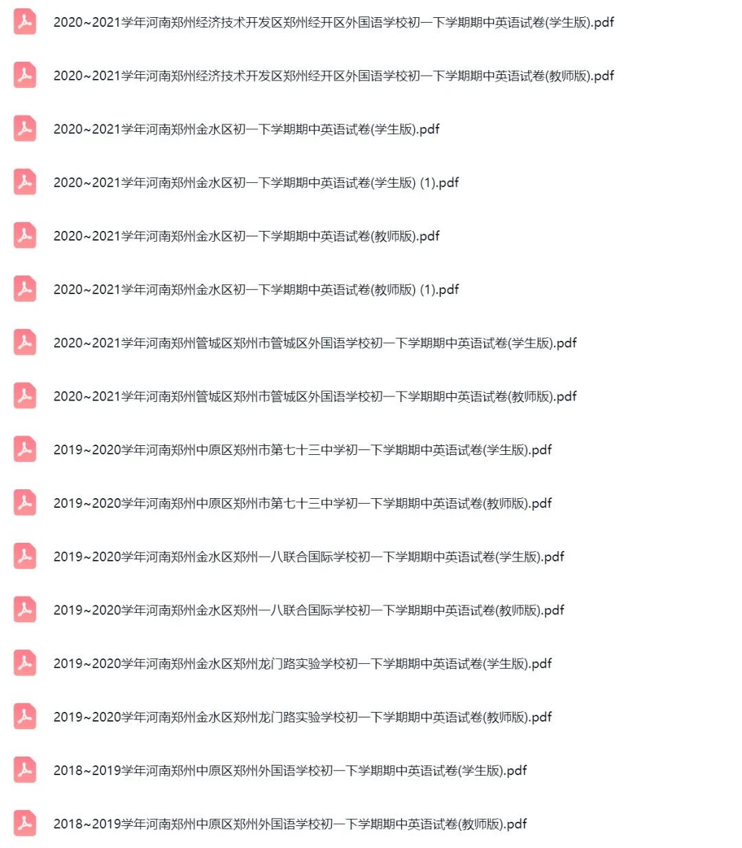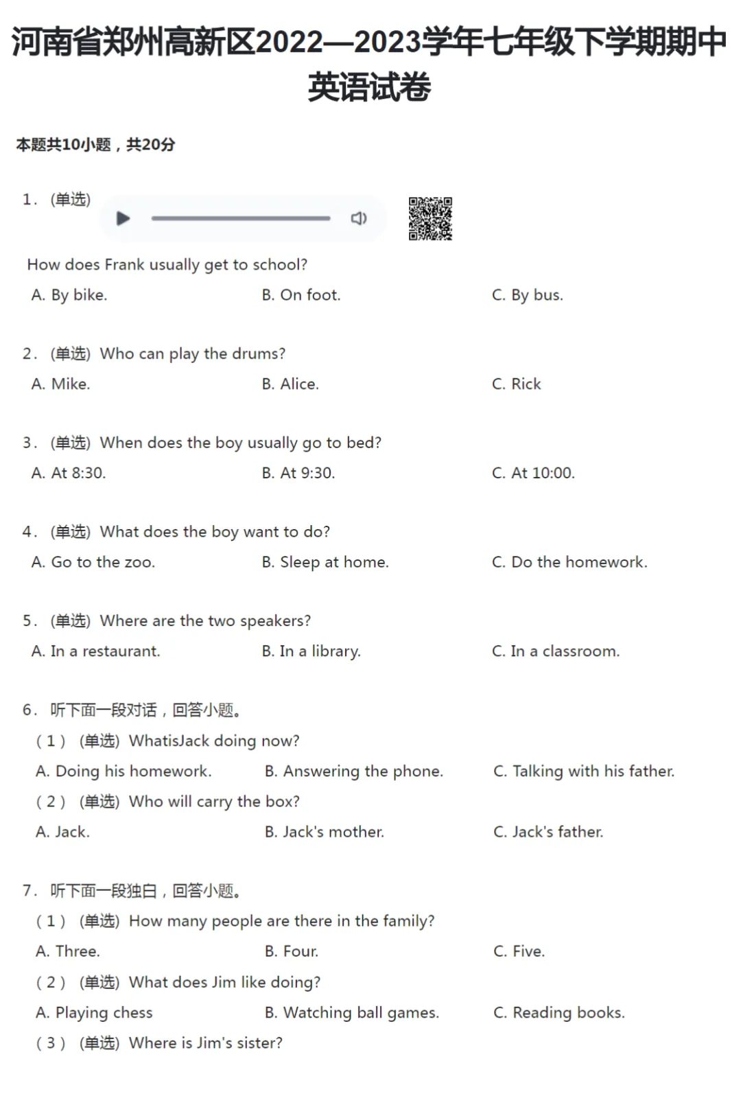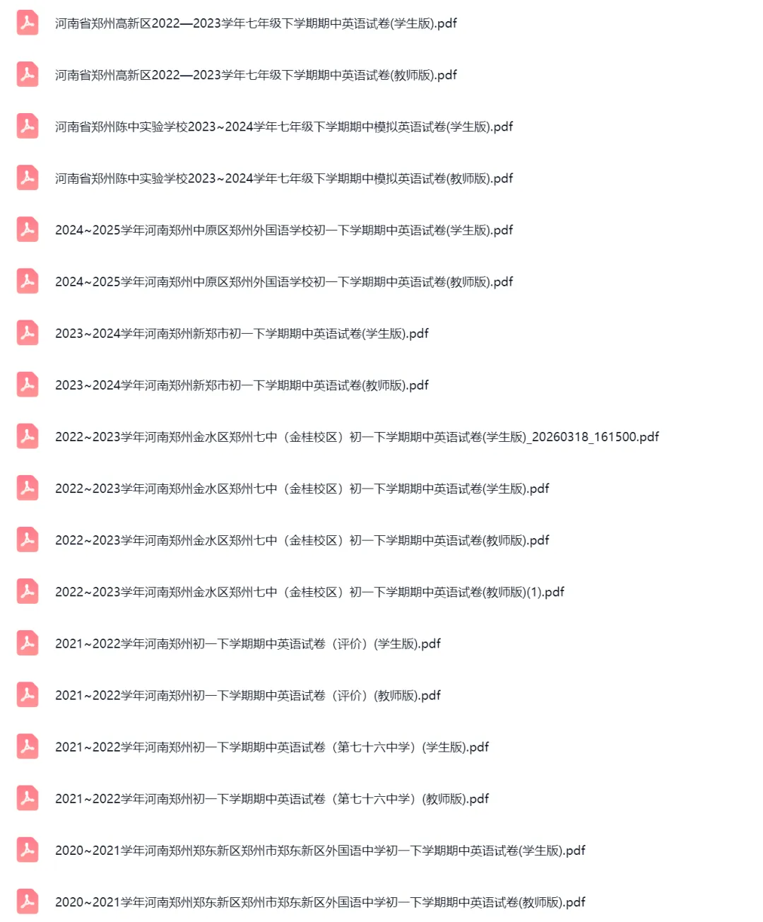 42套2017-2024学年河南郑州初一下学期期中英语试卷及答案解析