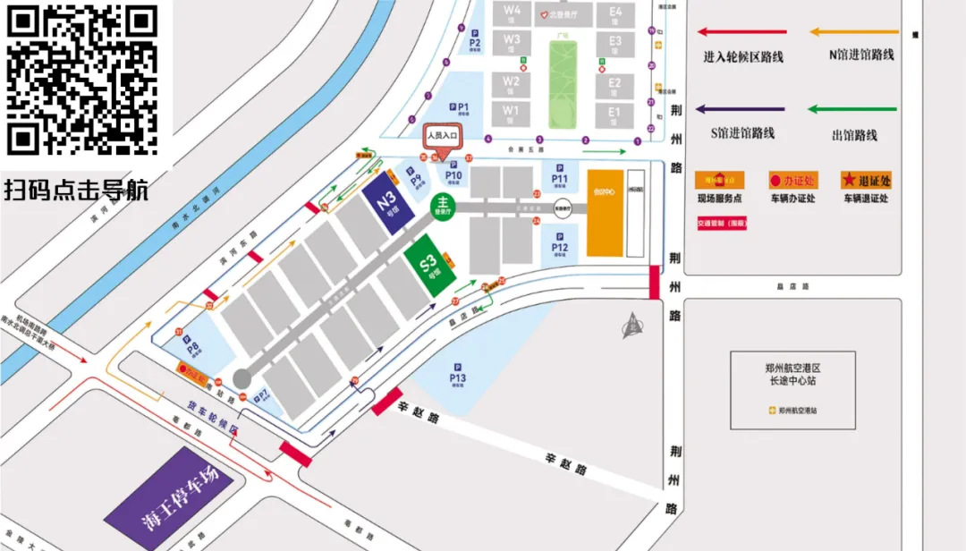 自驾建议导航至:中原国际会展中心P1停车场
