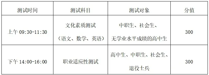 1.测试对象:中职生、社会生及无学业水平成绩的高中生。