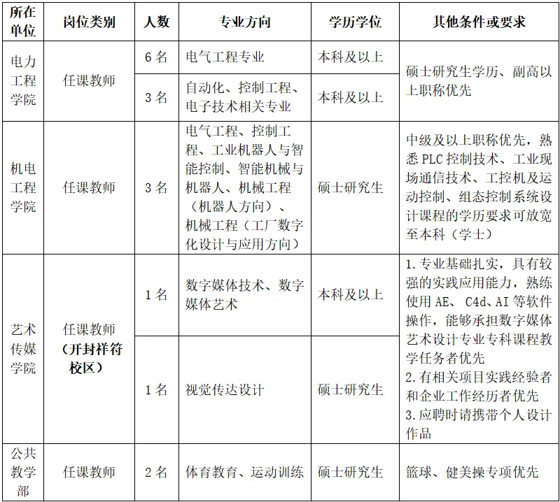 (一)招聘对象:全日制优秀本科毕业生、硕士研究生,应往届均可,年龄一般不超过35周岁。具有高校从教经历、行业工作经验者,或中级及以上专业技术职务者优先。