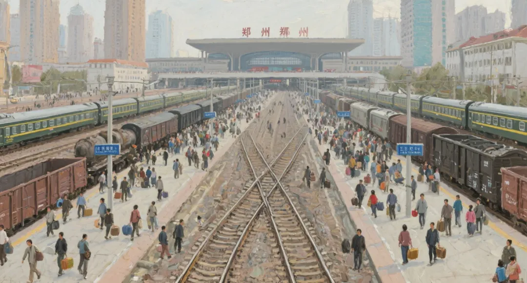 今天的郑州是中国铁路的心脏。郑州站每天发15万人次,郑州东站是全国唯一的高铁十字交会站。