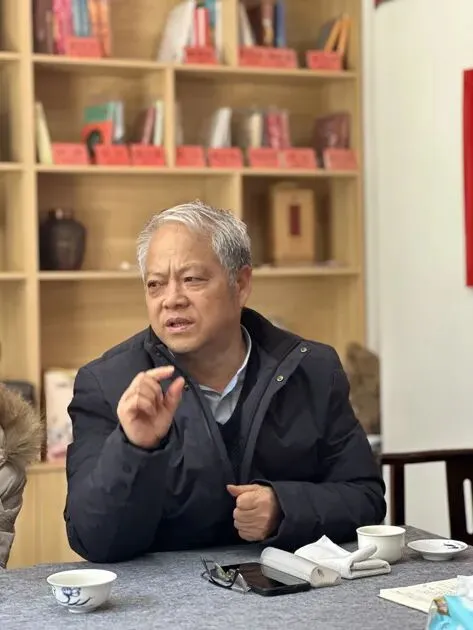 读书会伊始,仓超会长以“何为文学”为引子,开启了一场思想的激烈碰撞。他从文字的起源娓娓道来,细致对比中西方文字的发展脉络,深入剖析文章字词排列的精妙逻辑,层层递进地引导大家探讨文学与作家的深层关系。仓超会长的发言犹如一把钥匙,打开了众人对文学本质思考的大门,现场氛围瞬间被点燃,大家纷纷投以期待的目光。