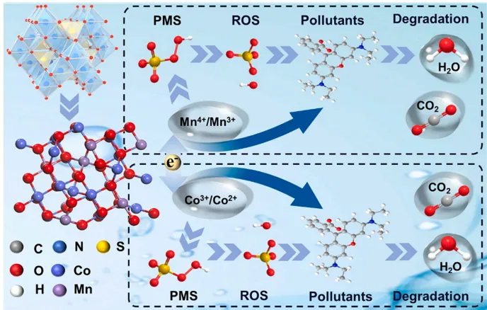 那么,这些废料变身的催化剂是如何“吃掉”染料分子的呢?原来,它们就像高效的“自由基工厂”,能把过一硫酸盐(PMS)激活成超强氧化剂。