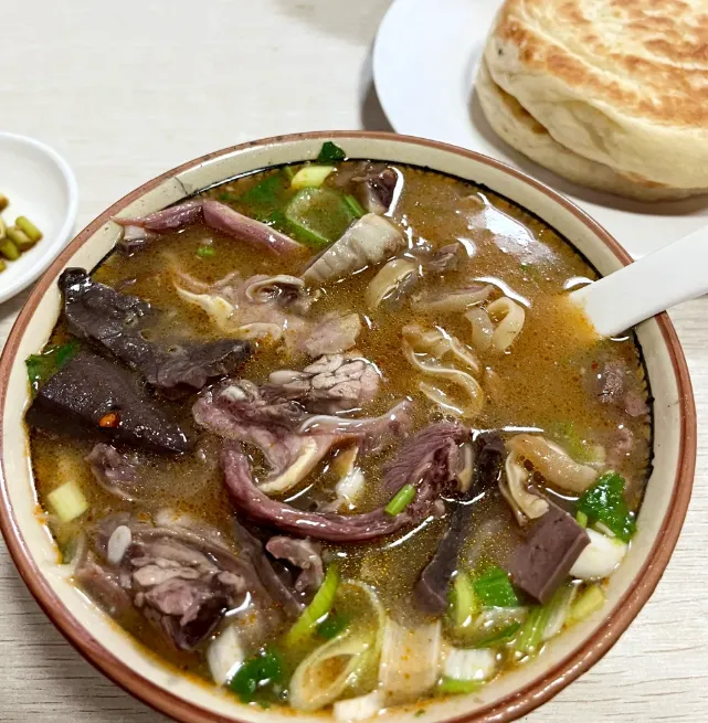 做法简单——羊骨熬四小时,汤白如乳;面拉三遍,筋道如丝;端来一碗,让油泅着花,喝一口,比什么补药都解乏。