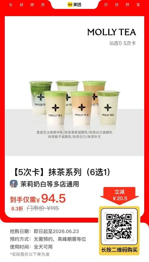 ✅ 94.5元抢原价115元套餐,6选1抹茶饮品任性喝