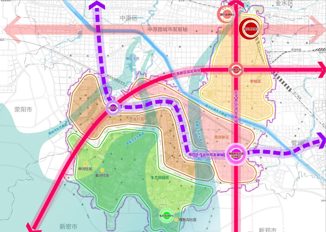 纳入本次国土空间分区规划管理的9大区域,是郑州未来资源倾斜、产业集聚、配套升级的核心主战场,涵盖:
