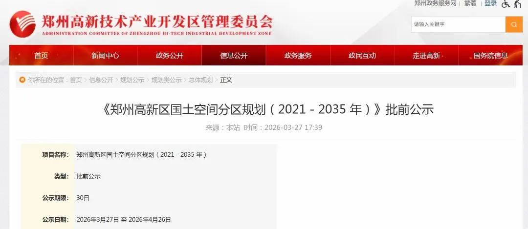 近日,《郑州高新区国土空间分区规划(2021-2035年)》(规划草案)正式对外公示,这份长达14年的发展蓝图,直接敲定了高新区未来的发展方向。