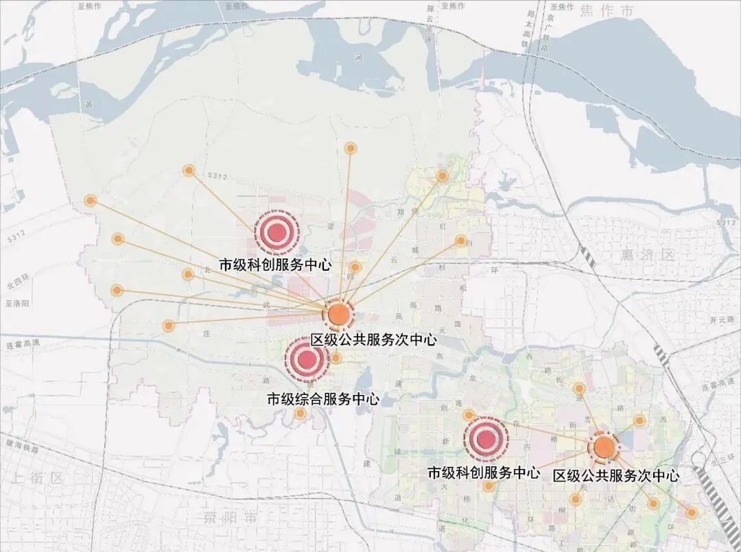 打造辐射西部城区、荥阳、上街的高等级公共服务设施,建设优质教育与科研中心、区域医疗中心,完善市级—区级—社区级三级服务体系,真正实现学有优教、病有良医、老有颐养