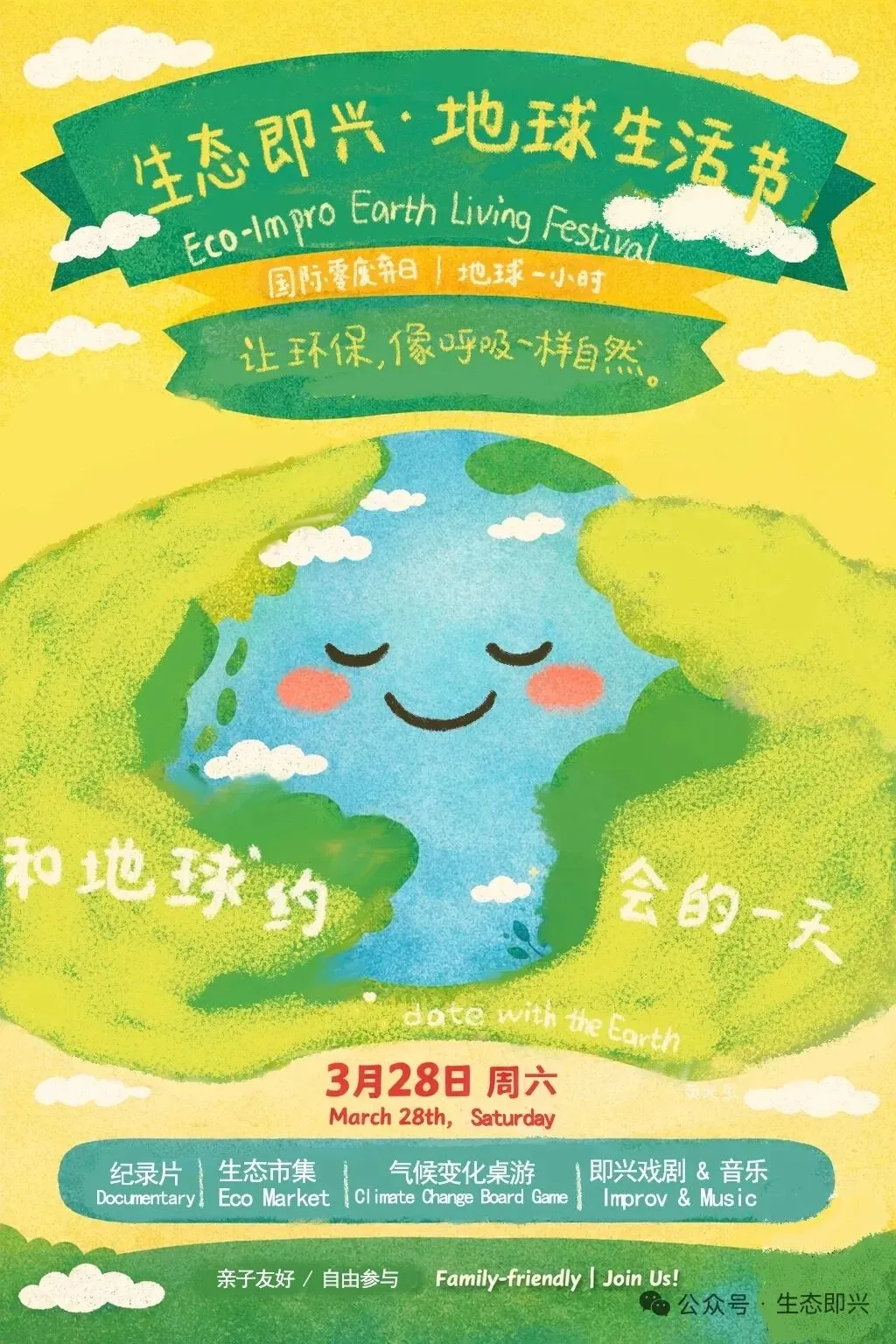 纪录片放映 × 分享会即兴戏剧 × 气候变化桌游(科莱美特)小森林生态市集 × 闲置交换零废弃展览(含味道剧场)环保酵素制作
