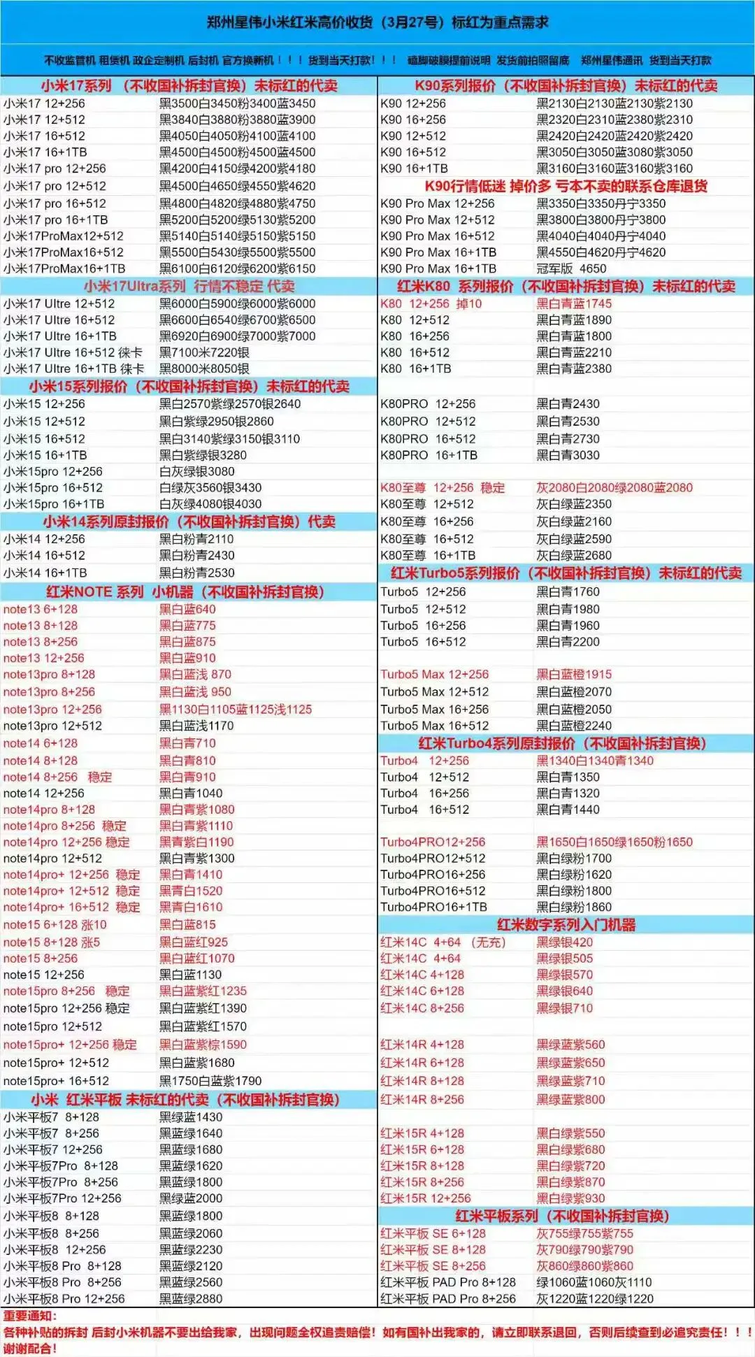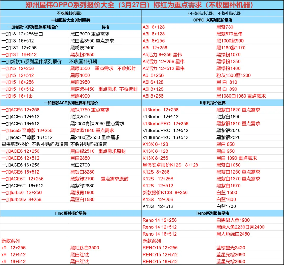 郑州讯翼通讯03月28报价