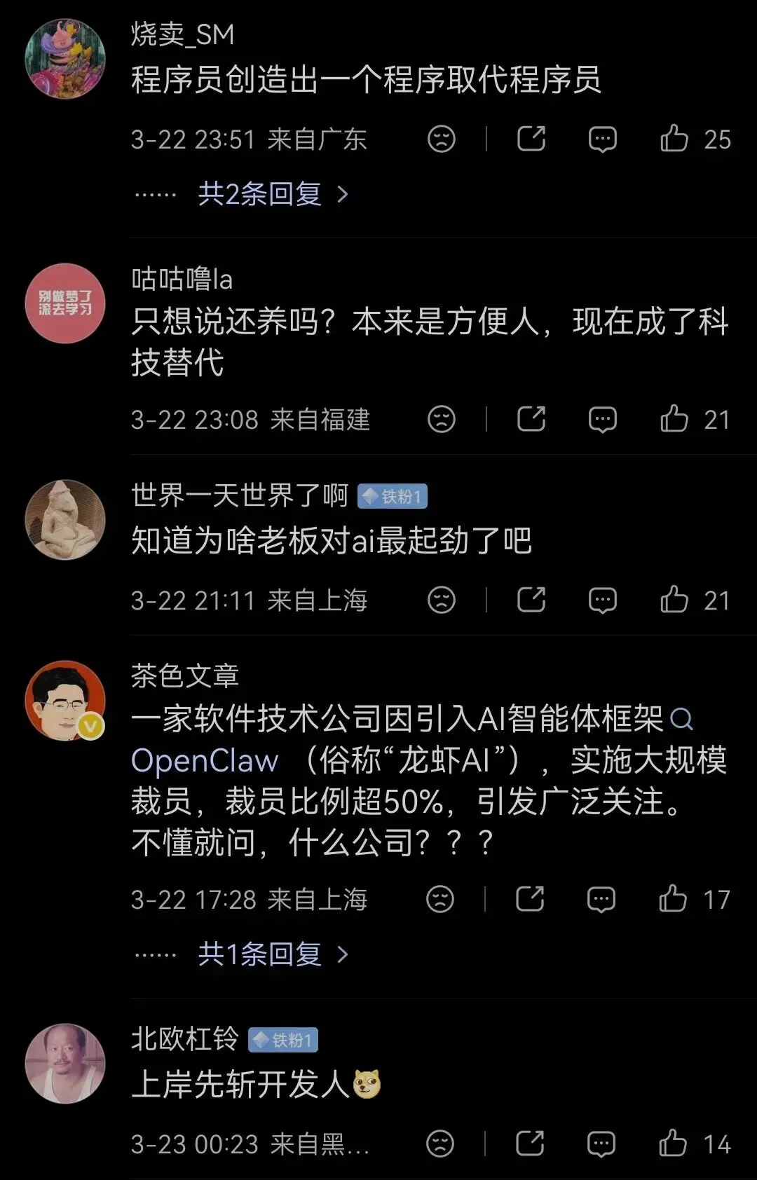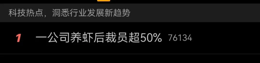 3月23日,早上#一公司养虾后裁员超50%# 冲上热搜。