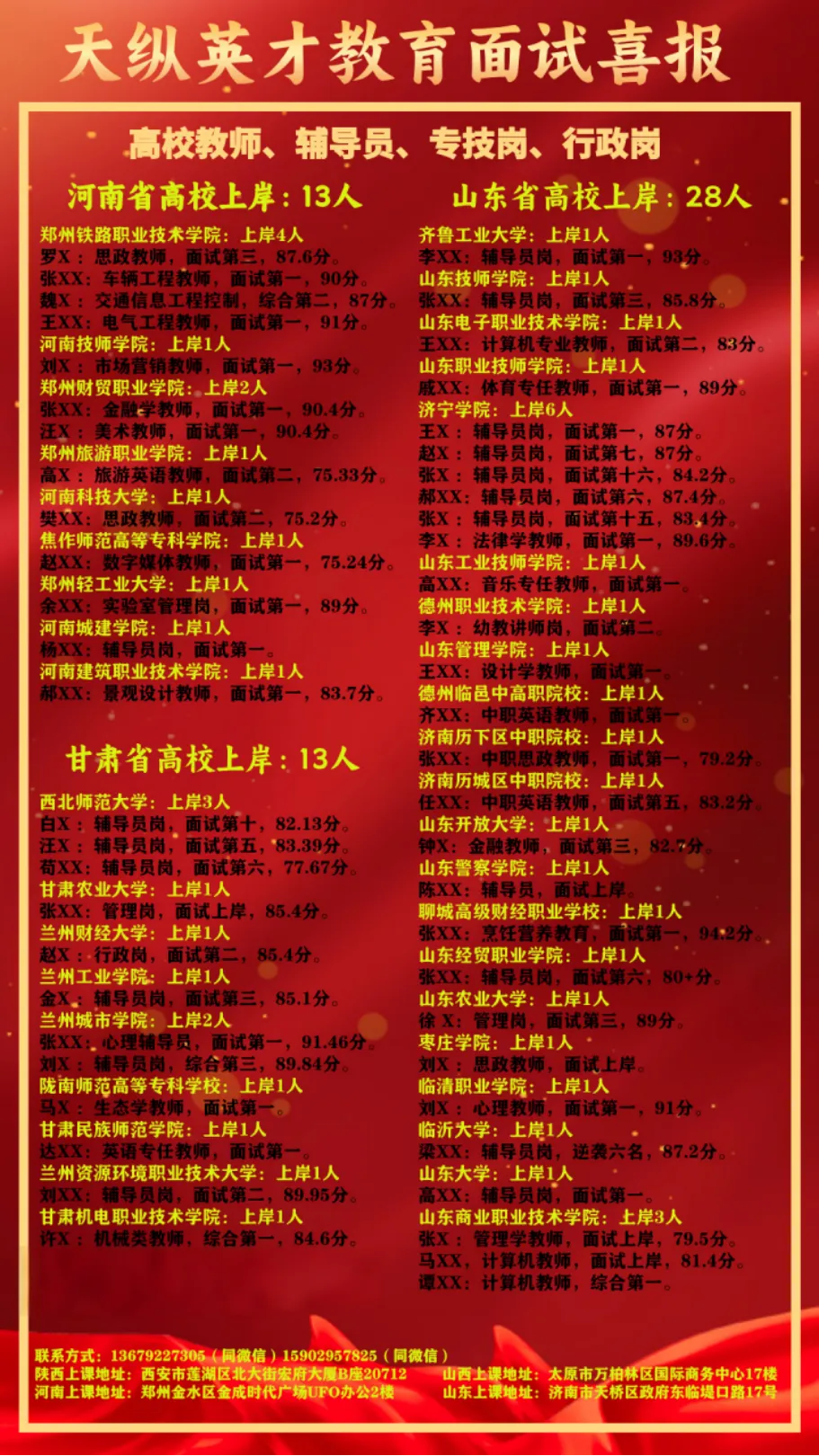 根据岗位需求采取试讲、专业考核、综合素质测评等形式对应聘者进行考核。考核成绩满分100分,成绩低于60分者不予录取。