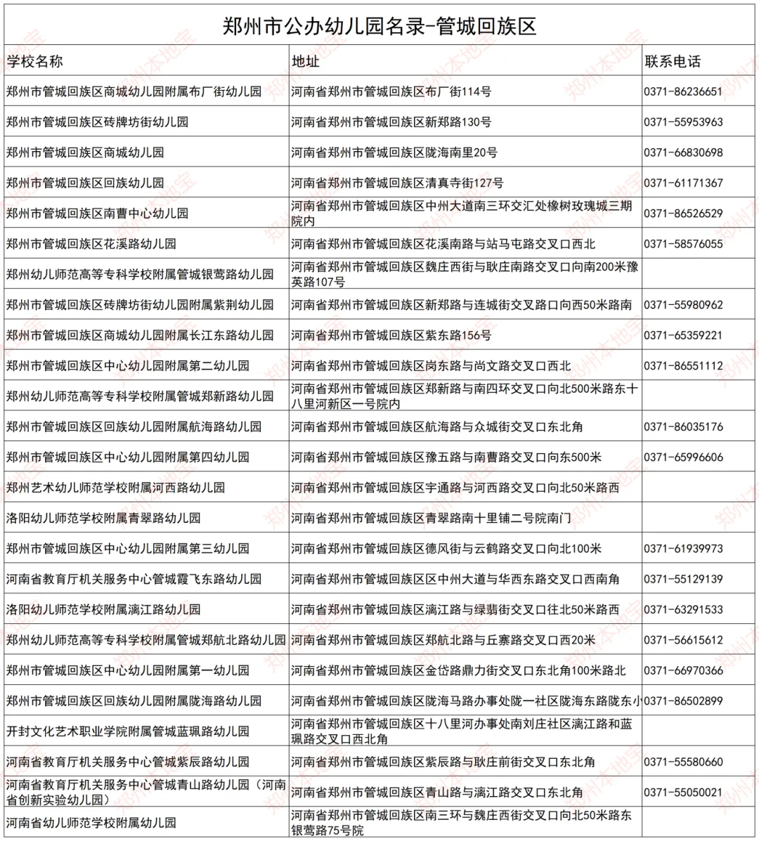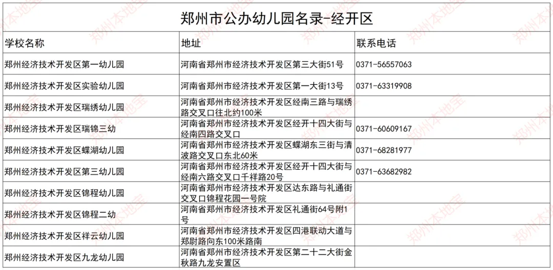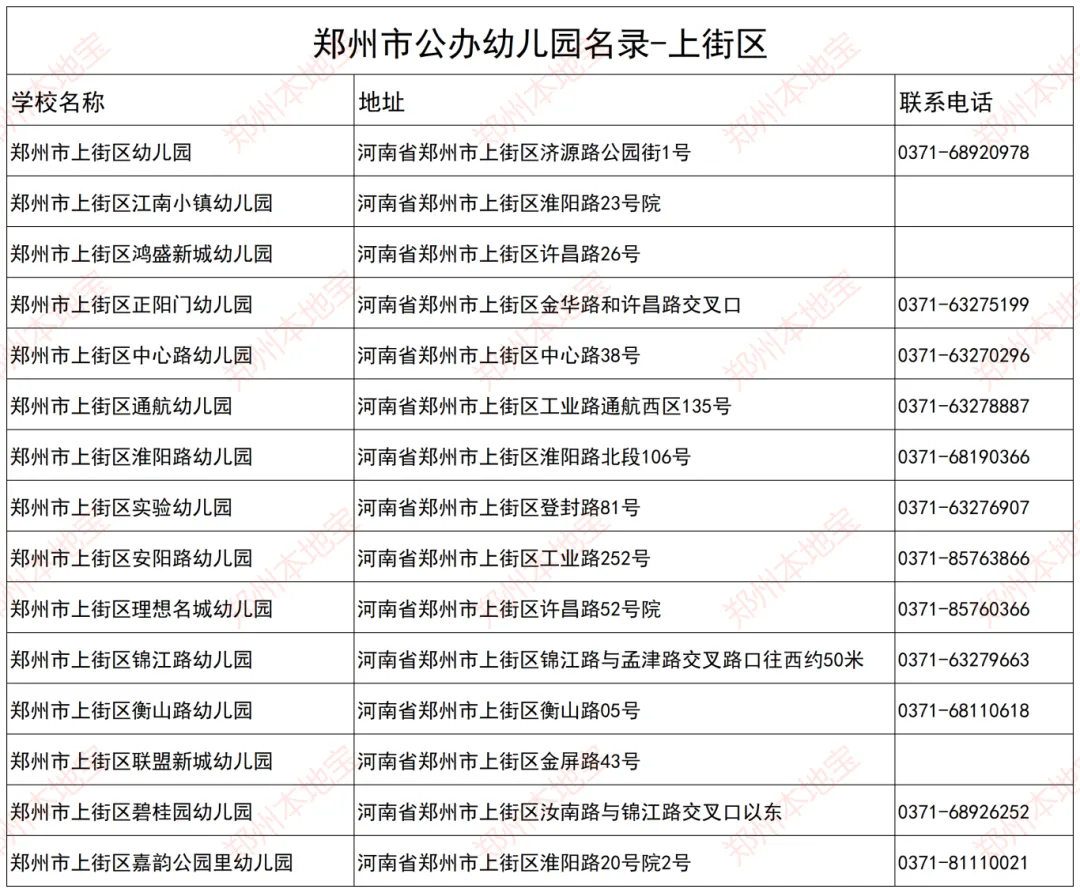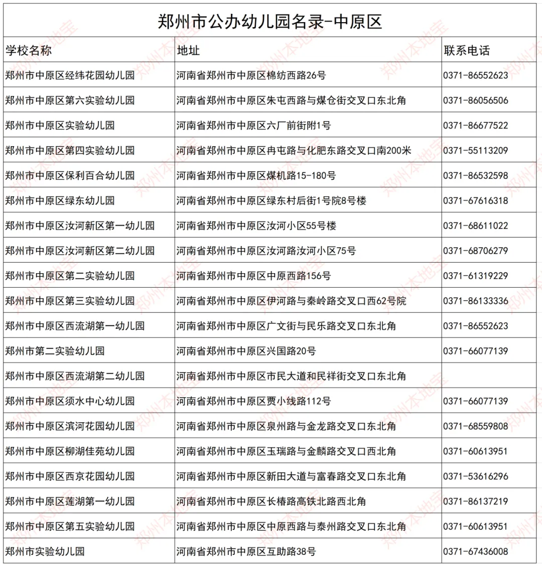 注:本文表格由郑州本地宝编辑整理,使用请注明来源!(幼儿园信息如有变化,以官方为准)