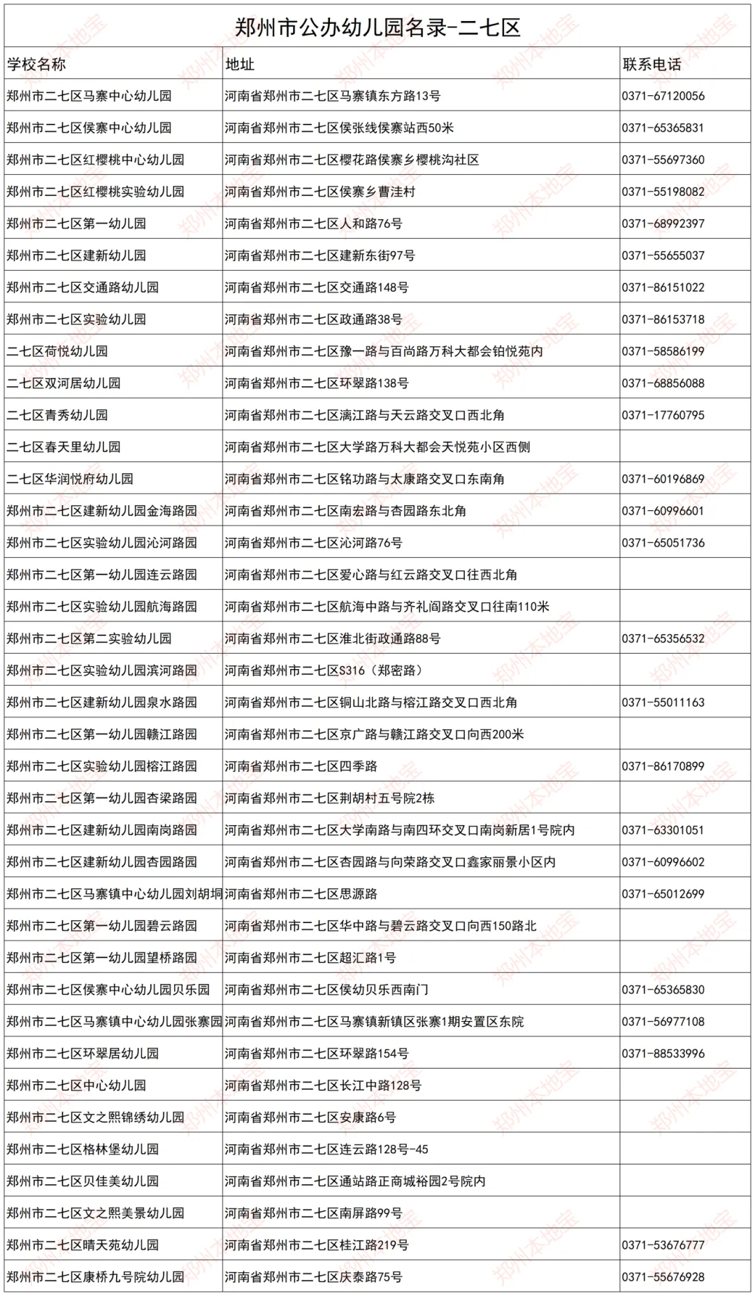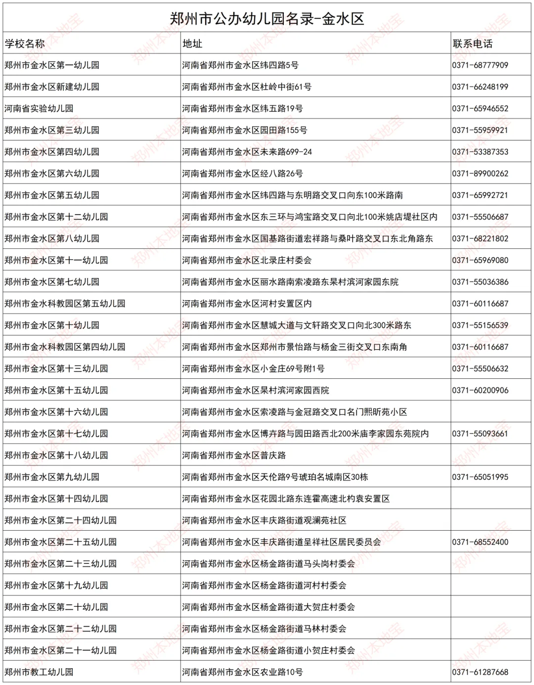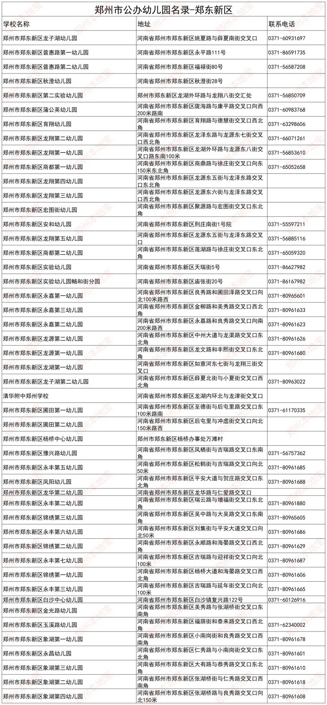 注:本文表格由郑州本地宝编辑整理,使用请注明来源!(幼儿园信息如有变化,以官方为准)