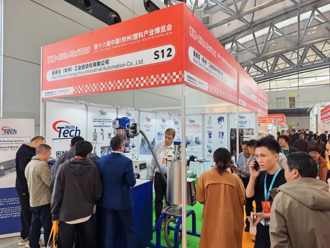 3月27日展会首日,现场热度持续攀升,MainTech展台成为全场瞩目的焦点之一!从上午开幕起,展位前便人流如织,众多专业观众驻足停留,近距离了解我们带来的核心设备——造粒机与氮气干燥机等产品,现场交流氛围热烈。