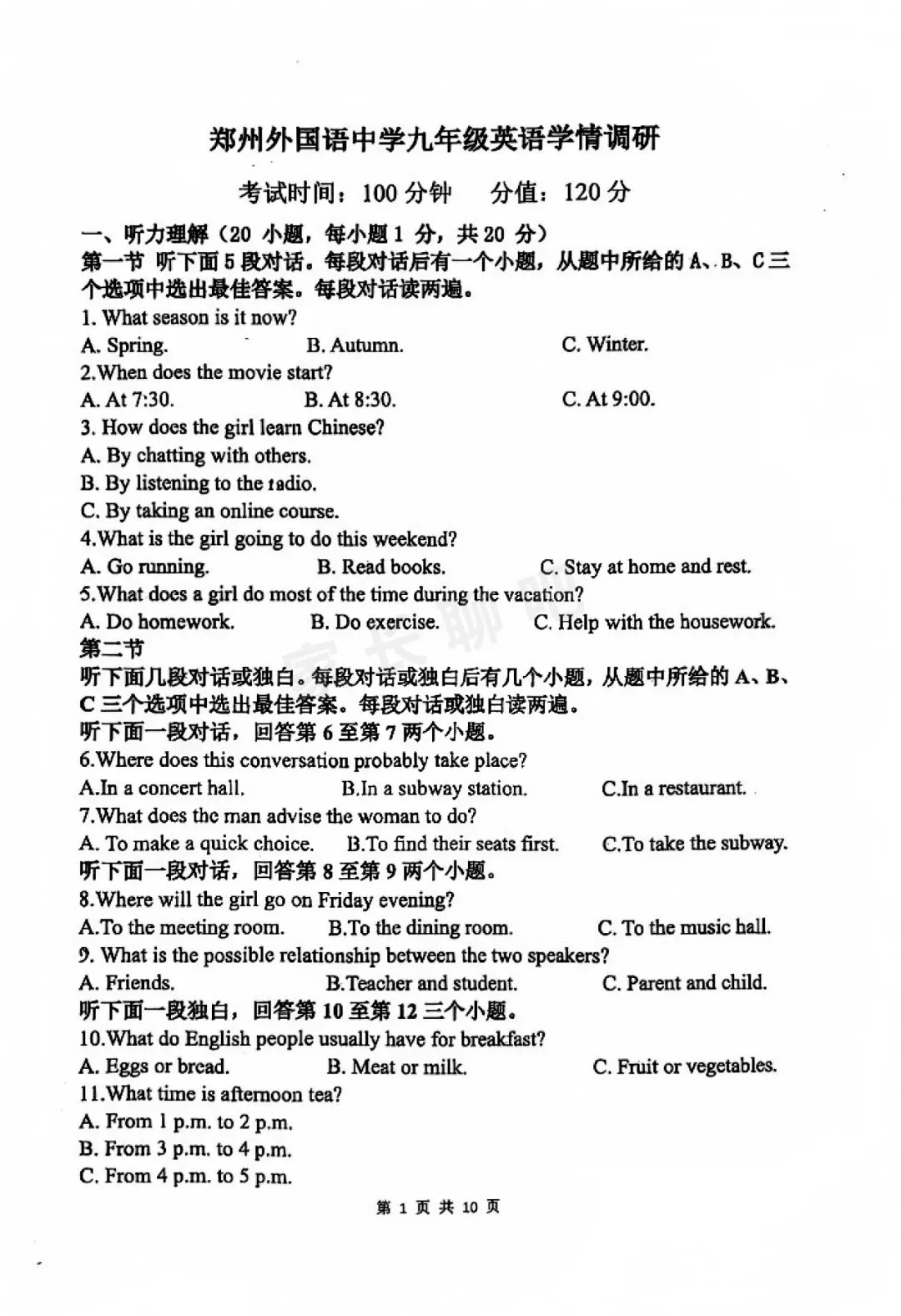 英语试题卷