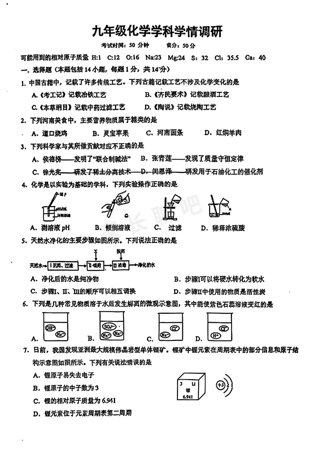 化学试题卷