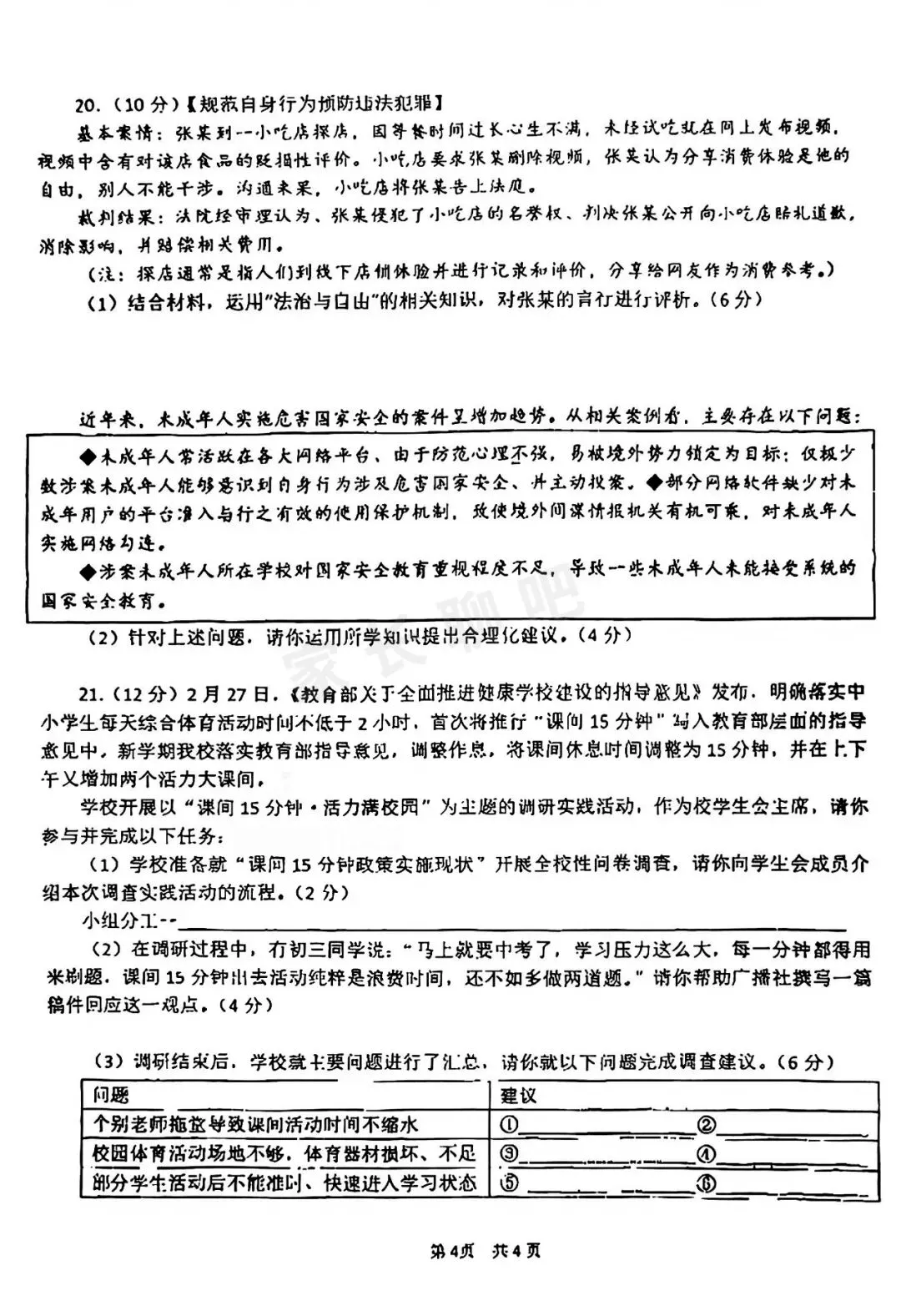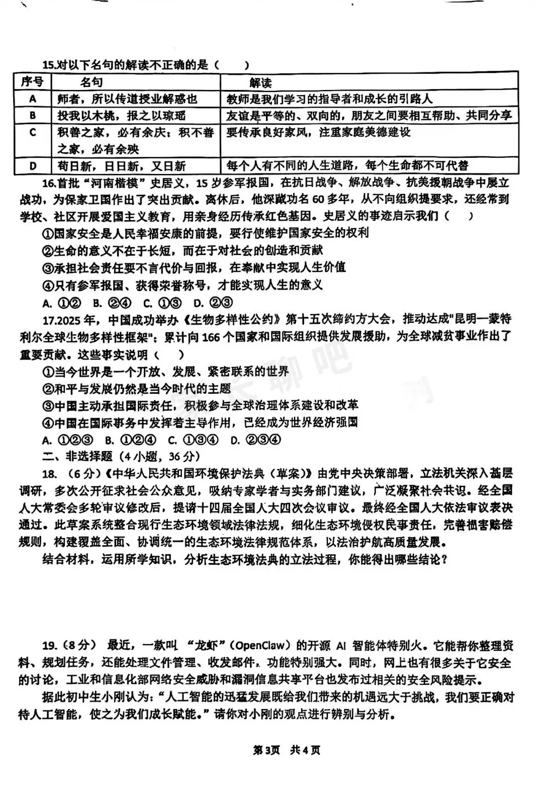道德与法治试题卷