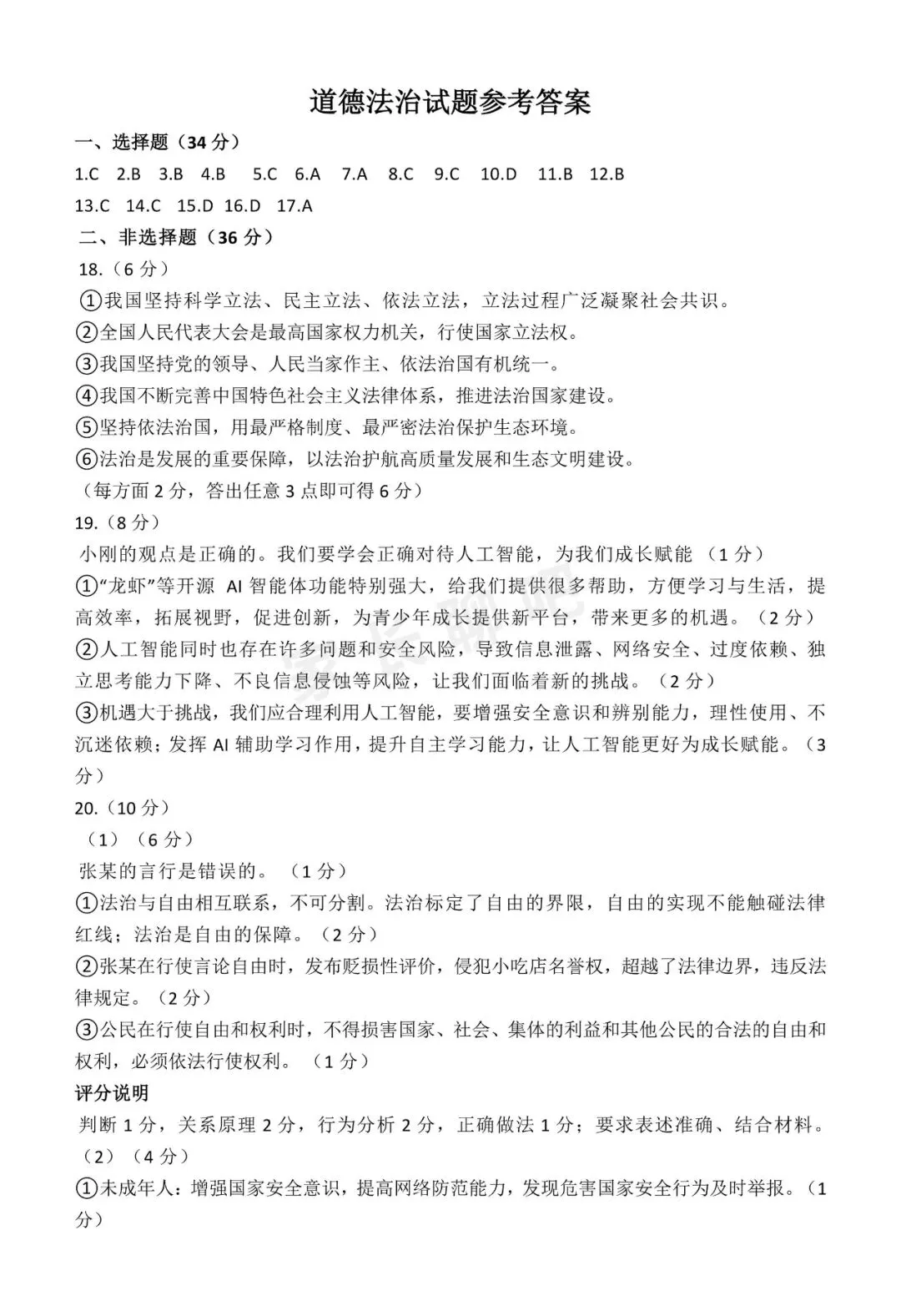道德与法治答案