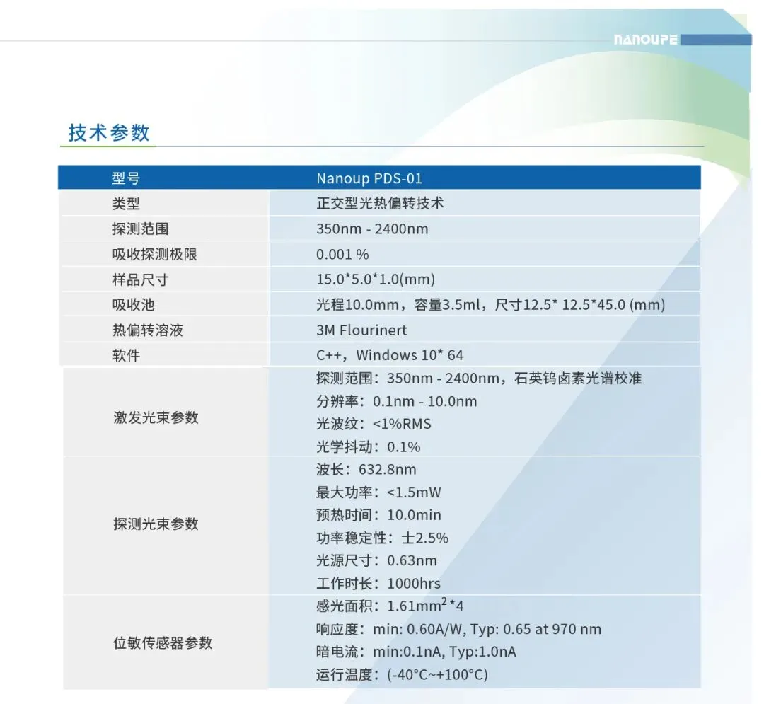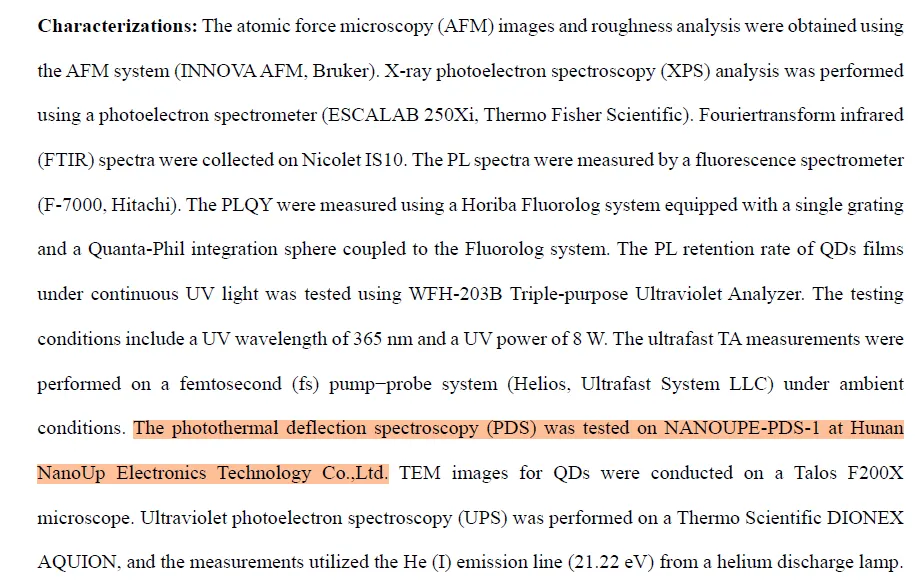 NANOUPE-PDS-1上进行光热偏转光谱(PDS)测试