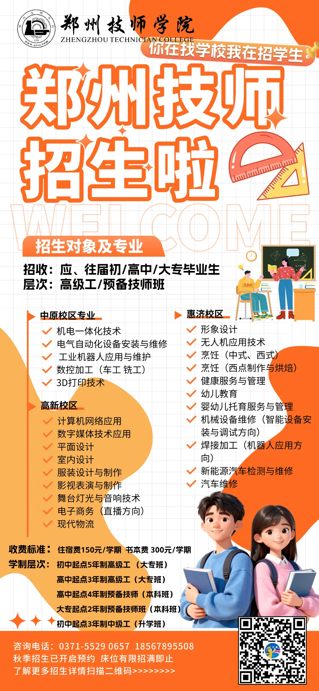 🔥 大专未就业、专升本失利毕业生专属名额紧张!提前预约,优先参观、优先选专业、优先预定床位,避开报名高峰,早日摆脱失业、备考内耗,走出专升本失利的迷茫!☎ 咨询热线:0371-5529 0657📱 手机/微信:185 6789 5508(霍老师,24 小时在线,可随时咨询、预约参观)📍 导航地址:中原校区|高新校区|惠济校区(可就近预约参观,实地考察校园、实操课堂)👉 扫码预约:获取专业详情 + 学费清单 + 报名流程(此处插入公众号二维码)