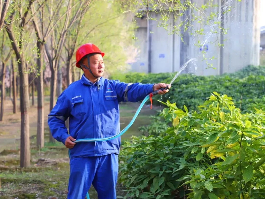 科学浇灌,保障苗木返青。公用环卫养护人员根据土壤墒情和植物需求,科学调整水压与水量,确保灌溉均匀透彻,为苗木全年的茁壮成长积蓄力量。