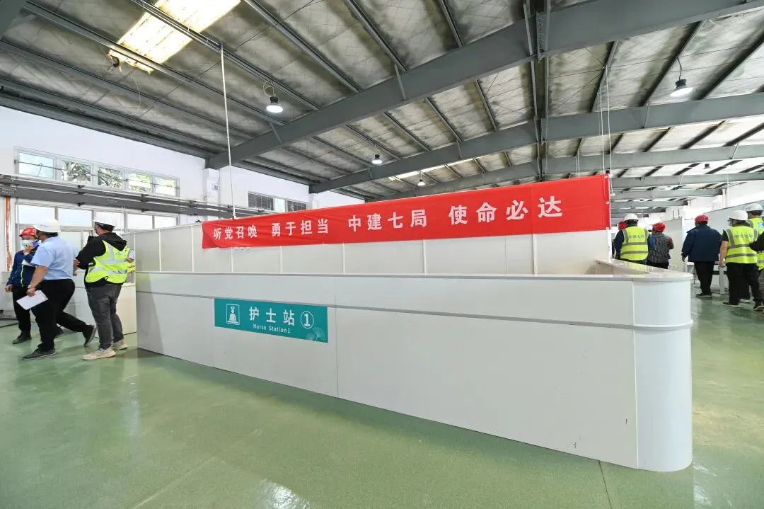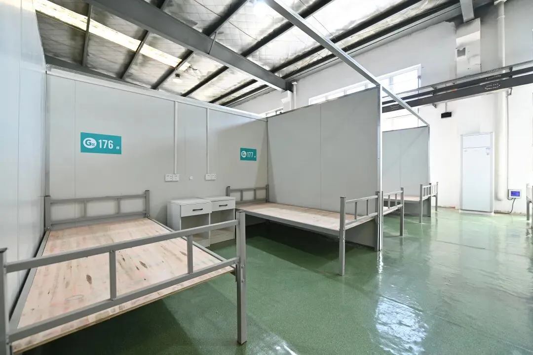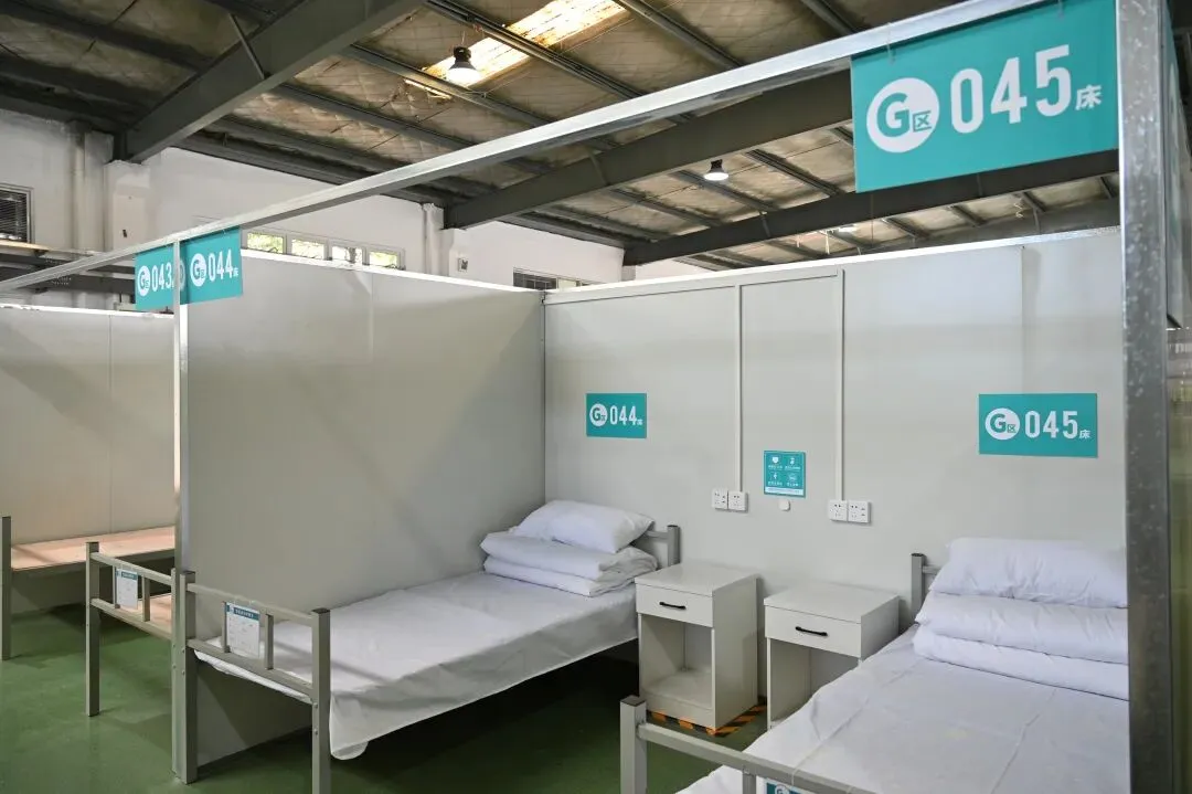 方舱G区设置有568张床位,设有两个护士站,内设核酸采集室,急救室,污物间,治疗准备室等。