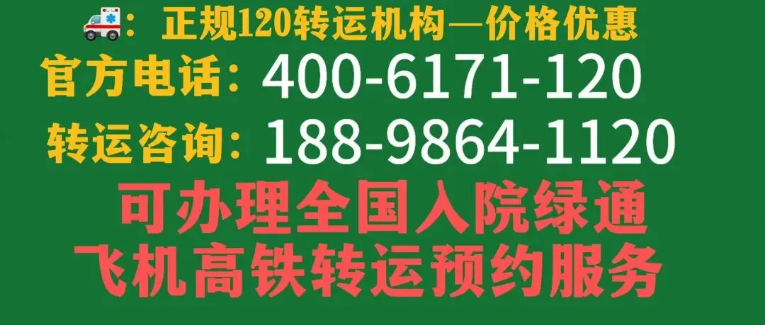 救护车预约平台,救护车费用咨询,我们是正规非急救120救护车出租转运服务公司,120救护车接送病人预约护送。24小时为术后康复、危重患者及跨区域就医人群提供专业医疗转运服务,提供120救护车出租‖私人120救护车(非急救)‖跨省长途转运危重病人转运市内转运术后康复病人转运高铁病人转运患者返乡大型活动赛事保障‖配备ICU设备呼吸机▪心电监护仪▪吸痰器•微量泵•氧气▪急救药箱▪专业医护团队24小时接送病人电话 4006171120