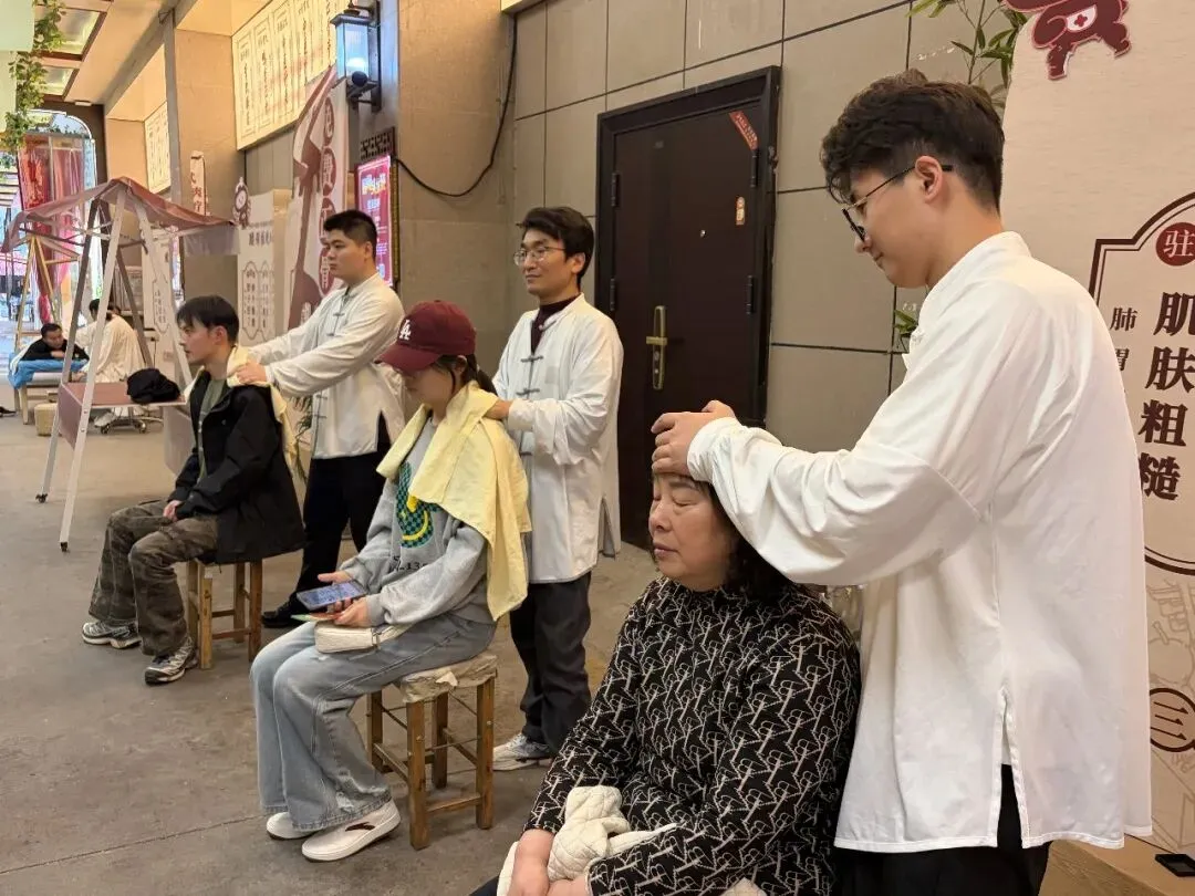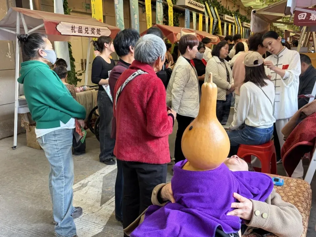 院内草木葱茏,药香袅袅,处处洋溢着生机与暖意。不少市民趁着好天气前来打卡体验,现场人气满满、秩序井然。从专业正骨推拿、针灸刮痧、葫芦灸、耳穴贴压,到体质辨识、健康咨询、养生茶饮品鉴,一站式中医特色服务悉数开放,让大家在轻氛围中感受传统医学的独特魅力。