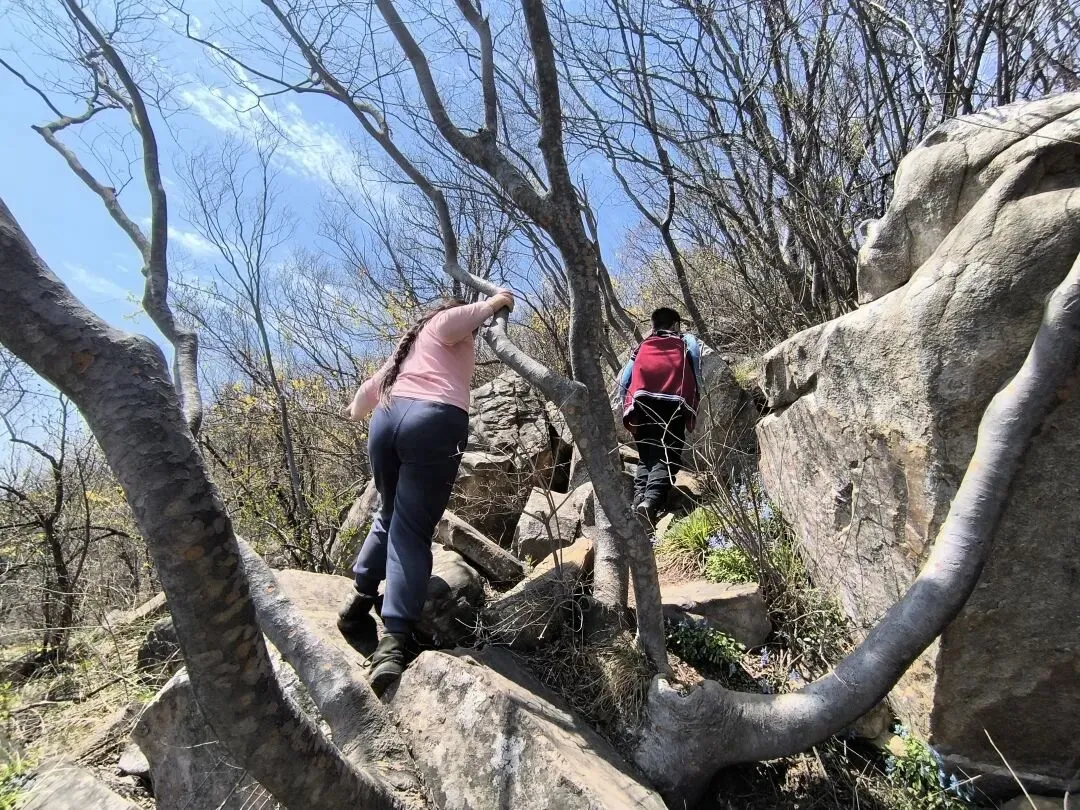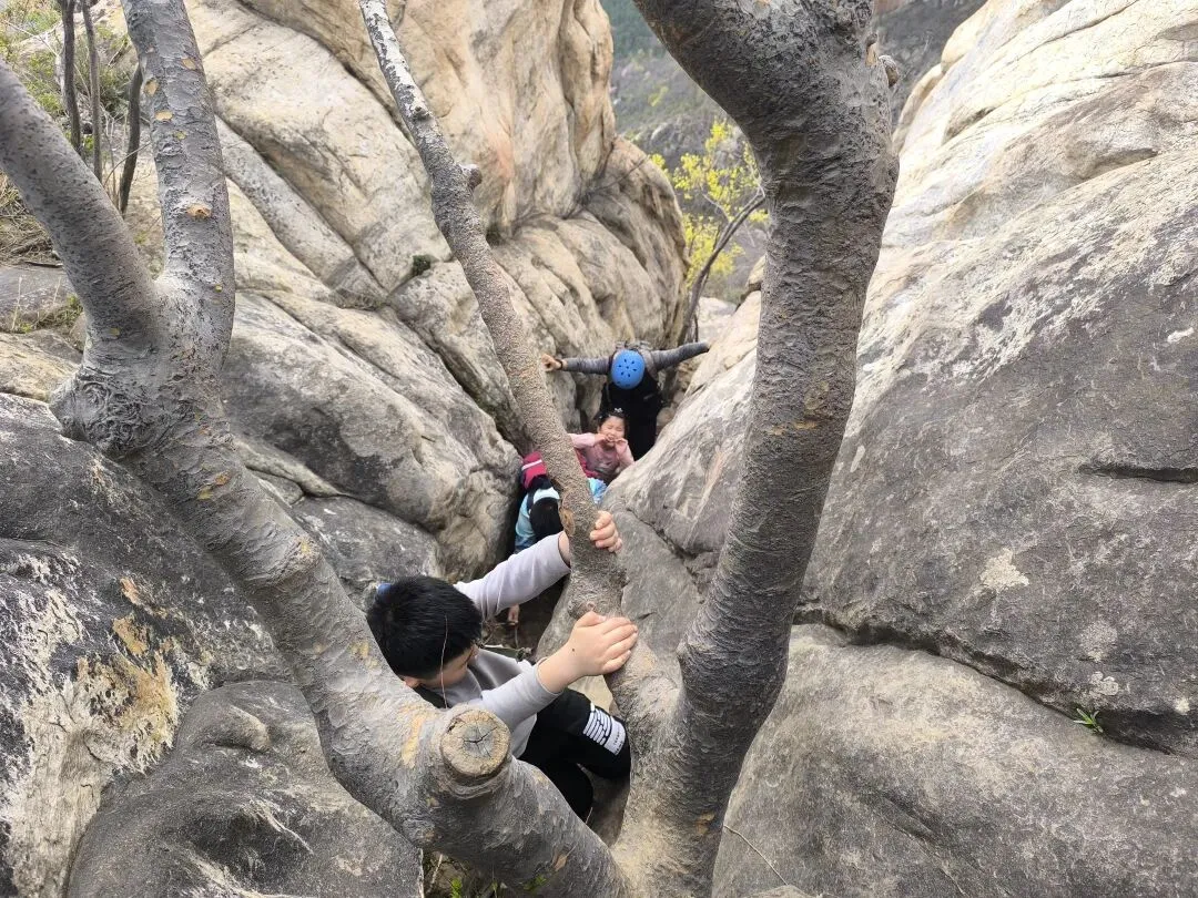 自制午餐——菠菜汁月亮馍加煎蛋生菜,美味,没辜负我五点多醒了就动手准备,蒸馍,煎蛋……!对面是紫霄?没敢去爬呢,据说难度系数高,体力消耗大。我们三个走东坡下的,没想到小朋友先锋队走的是一线天,难度大的路线,他们慢一点,最终还是殊途同归。 特别表扬最小的小朋友,我们的茉同学,攀爬能力与毅力,进步显著! 人嘛,就是这样,有人爱,有喜欢的人,有喜欢的业余爱好,如此这般的人生,幸福指数五颗星,知足常乐,心满意足。