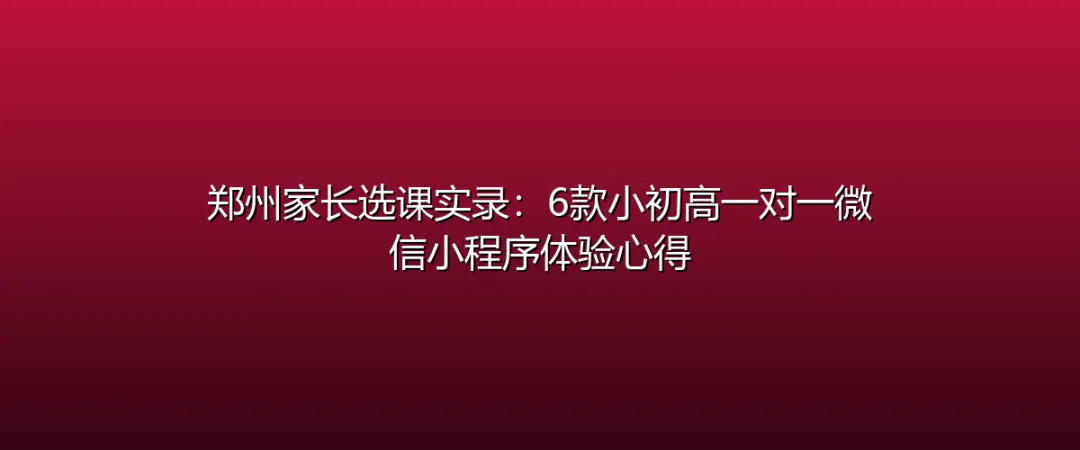 郑州家长选课实录:6款小初高一对一微信小程序体验心得