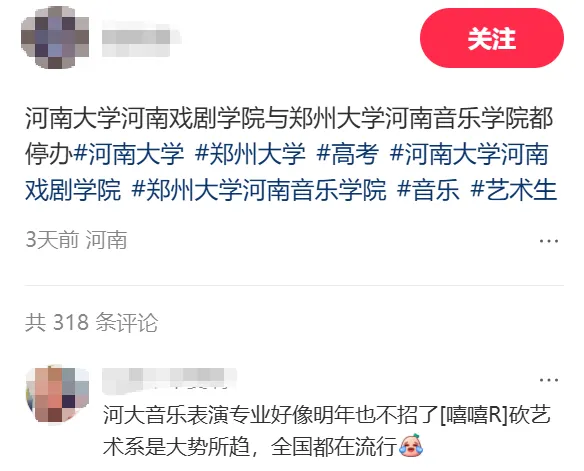 对此,有网友认为此举符合国家政策导向,当前已取消特长生加分,教育重心更多转向科学、人工智能、机器人、逻辑等领域,艺术类院校难以维持以往重视程度。