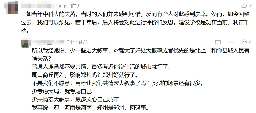 也有网友表示遗憾,将其类比当年中科大的变迁,认为若干年后或将引发更多反思,建设学校终究是利在长远的举措。