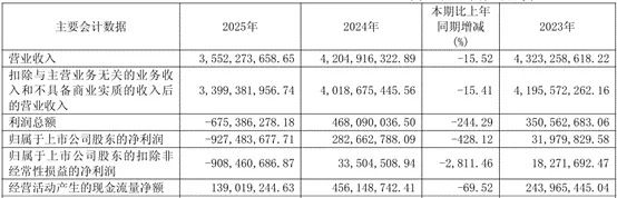 日前,郑州煤电(600121.SH)发布了2025年财报。报告期内,公司实现营业收入35.52亿元,同比下降15.52%;实现归母净利润-9.27亿元,上年为盈利2.83亿元;扣非归母净利润为-9.08亿元,上年为盈利3350.45万元。