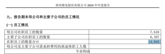 值得注意的是,2025年郑州煤电不仅人均薪酬下滑了,公司人数也下滑了。2025年公司在职员工总数为12563人,而2024年为14045人,减少了1482人。