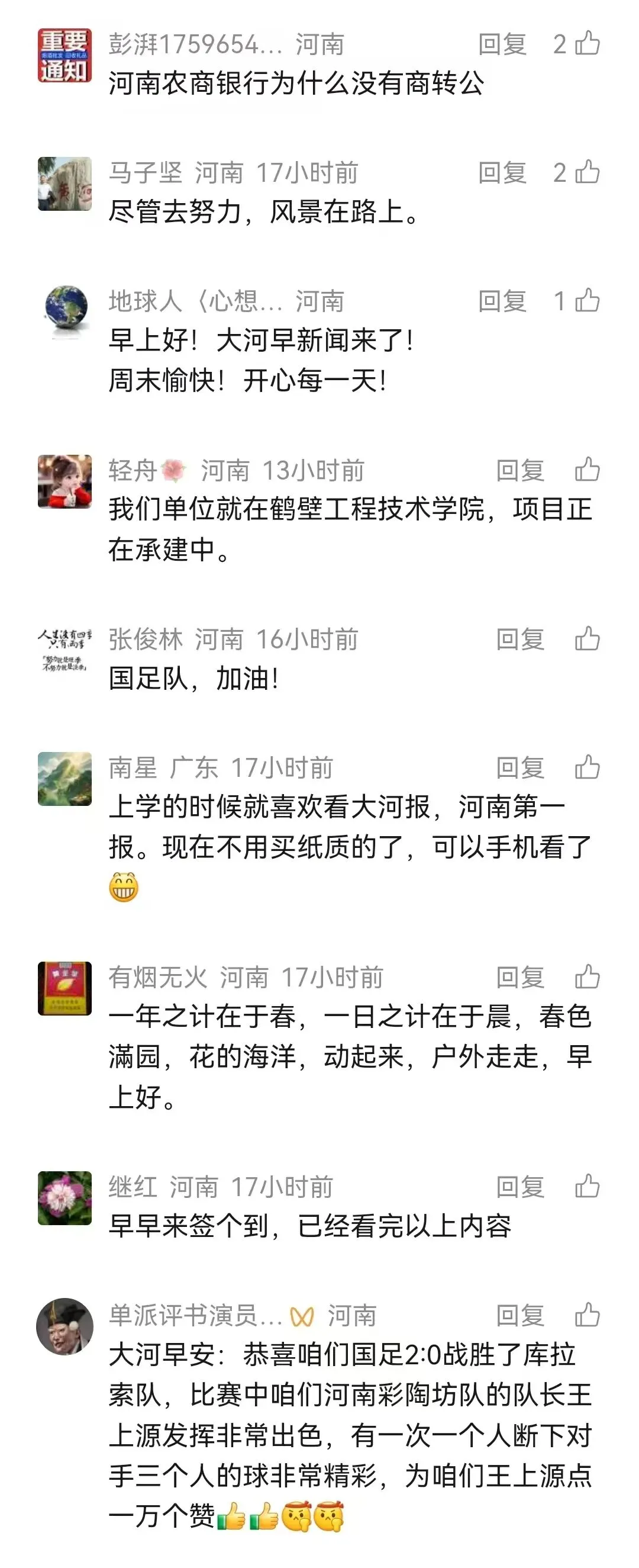 今天白天,全省多云间晴天;傍晚到夜里,全省多云转阴天,西部、南部部分县(市、区)有小雨或零星小雨。(河南气象)
