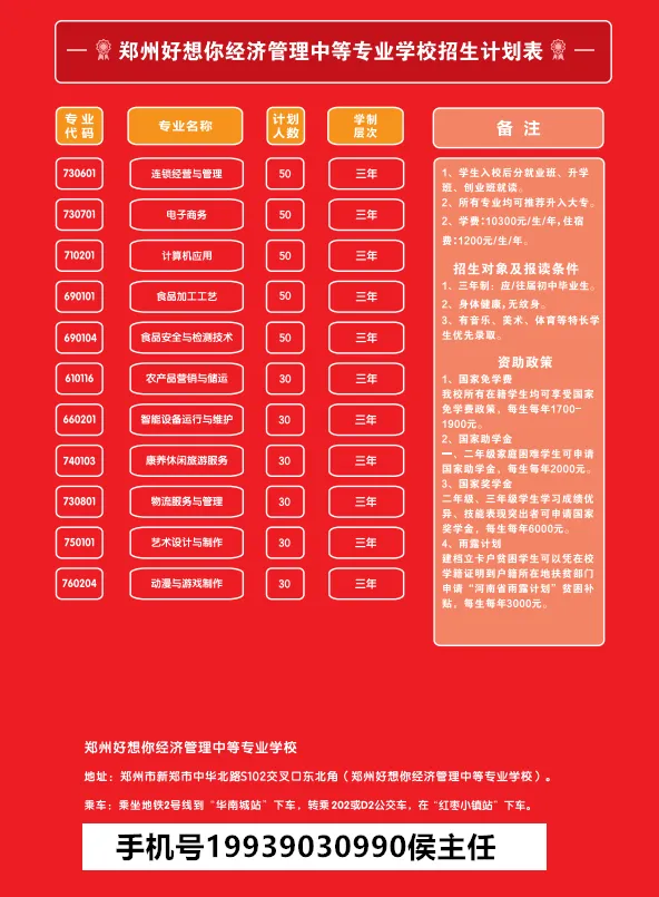 >郑州好想你经济管理中等职业学校招生简章