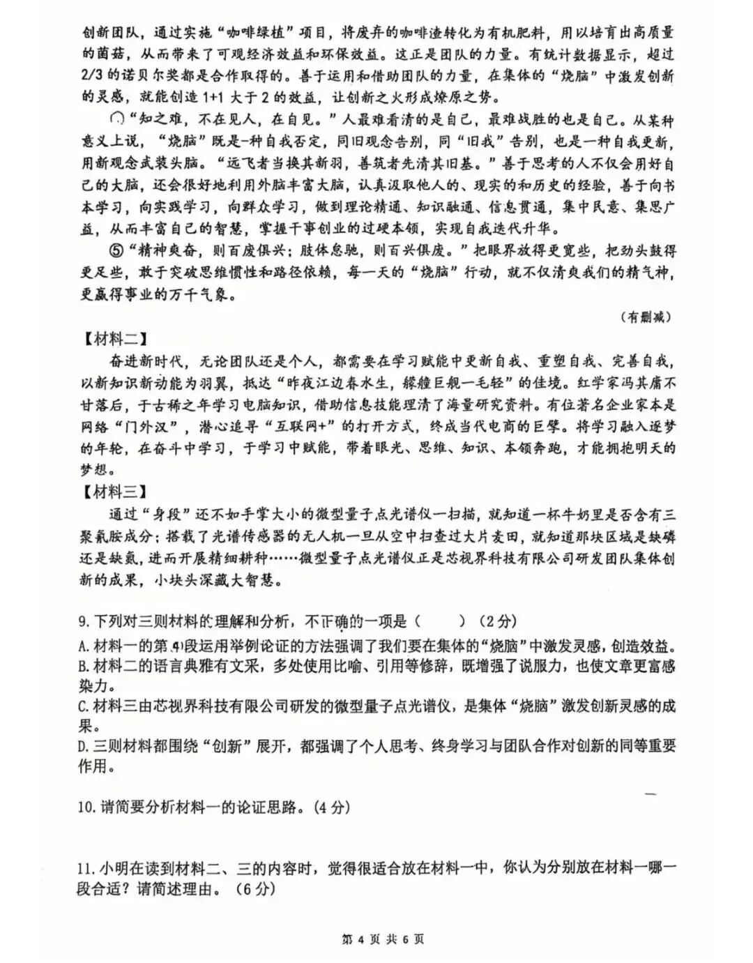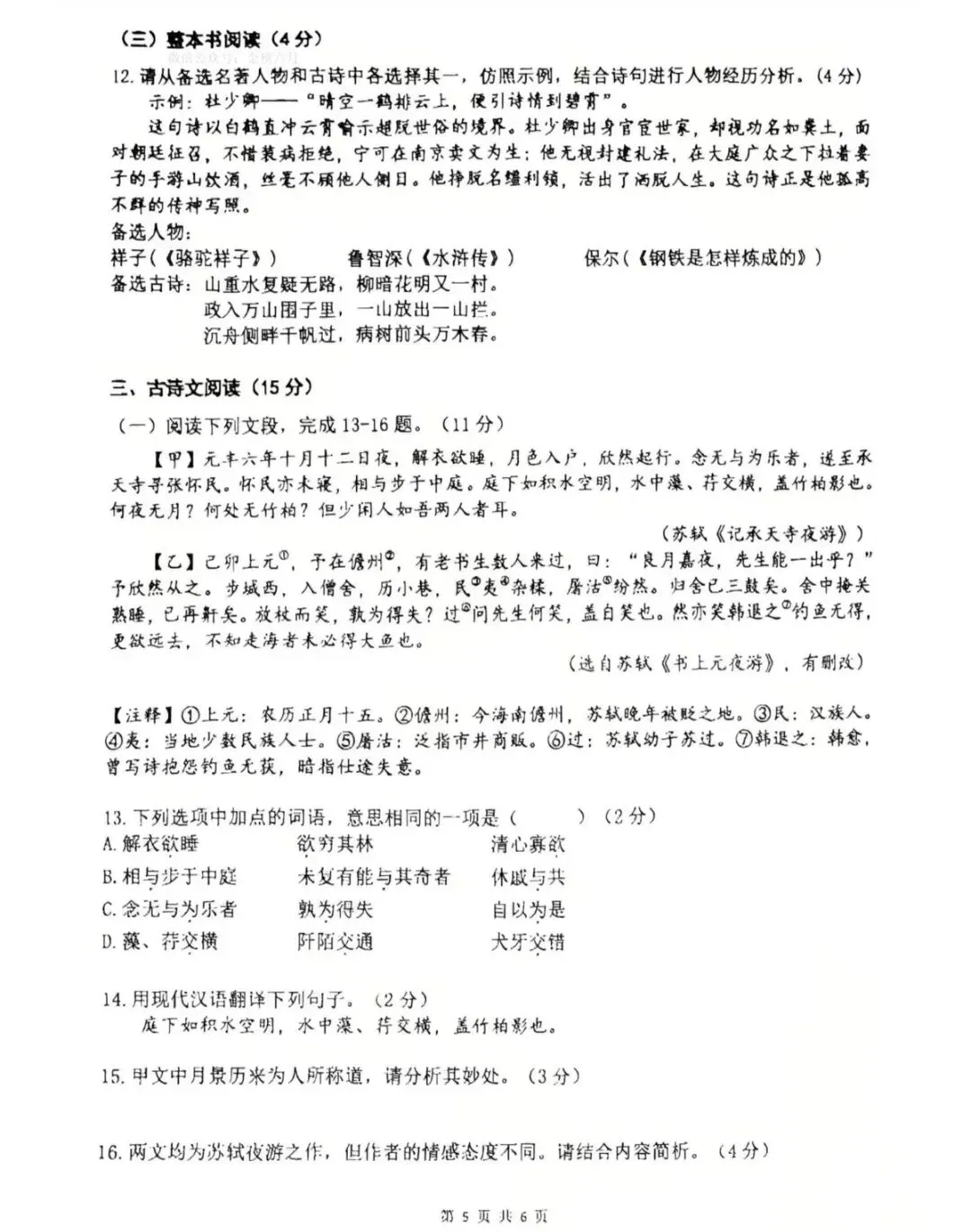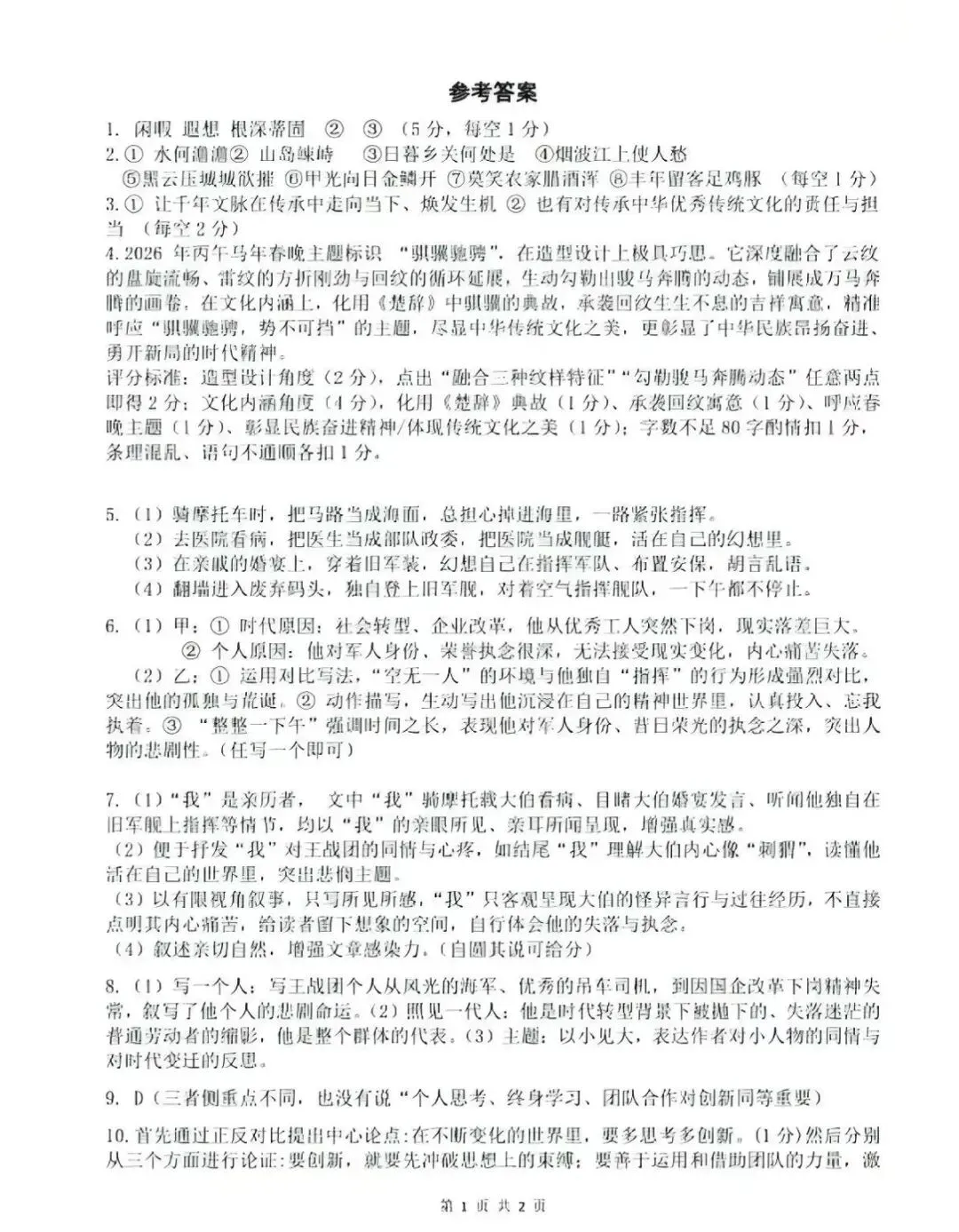 郑州外国语中学2025-2026学年九年级下语文模考试题及答案