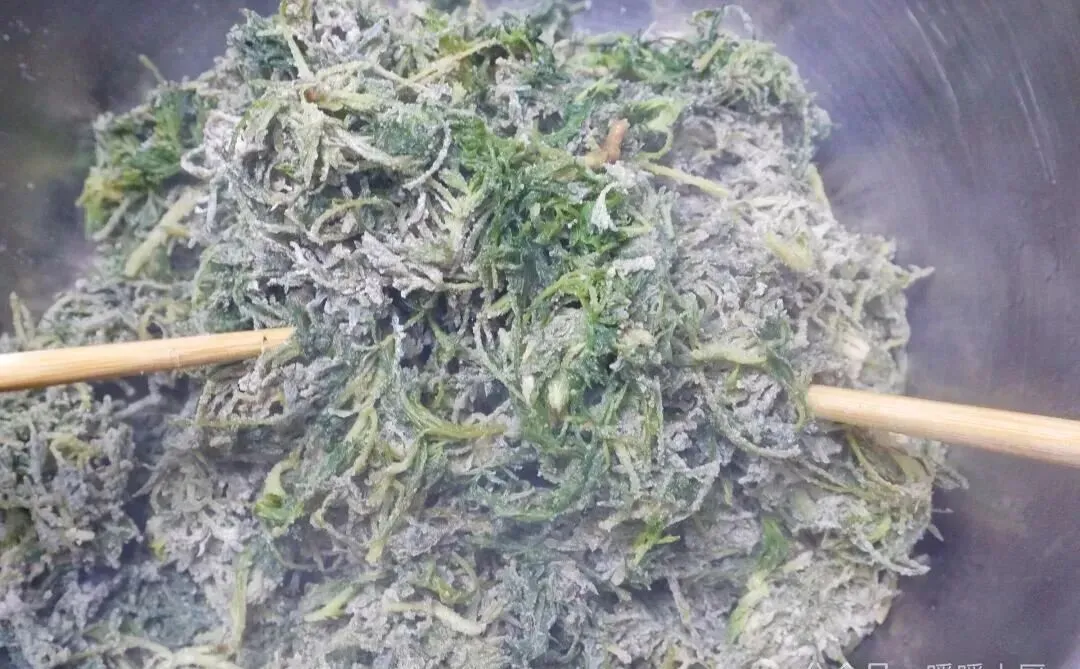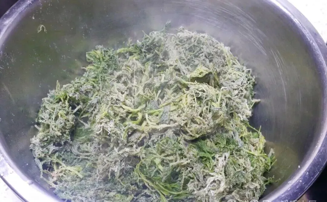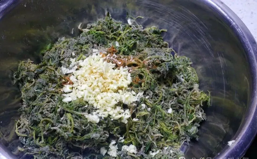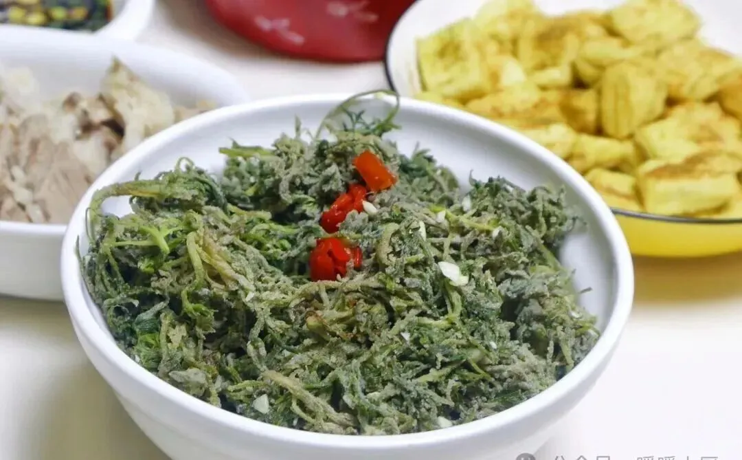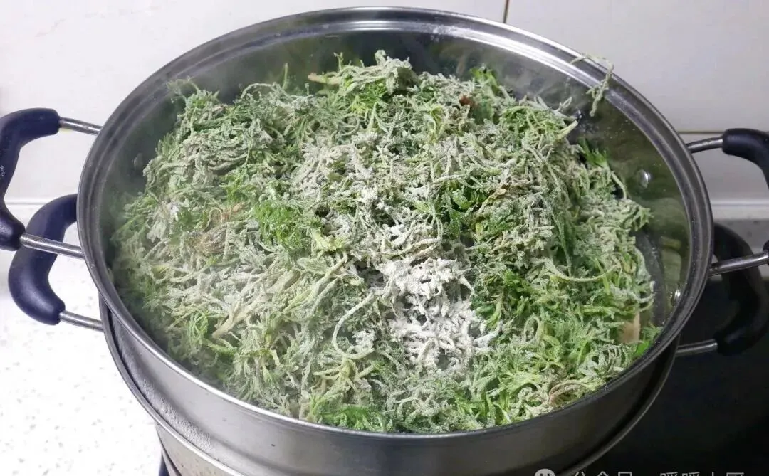 蒸好以后再拌蒜末、盐、调料,筷子一挑,根根分明,不坨不黏。那种口感很妙,带一点筋道,一点湿润,还藏着野菜本身的鲜气。这样的菜,年轻时可能嫌寡淡,到了拖家带口的时候,反而最懂它的好。
