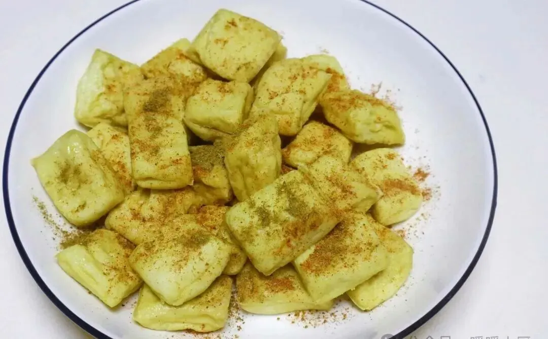 旁边那盘豆腐也很聪明。便宜、顶饱、好做,切块一摆,撒点辣椒面孜然,立马就有味了。它不是主角,却把整桌饭的层次垫起来了。清淡里带一点香辣,肉菜之外有个软乎乎的落点,孩子能吃,大人也不腻。