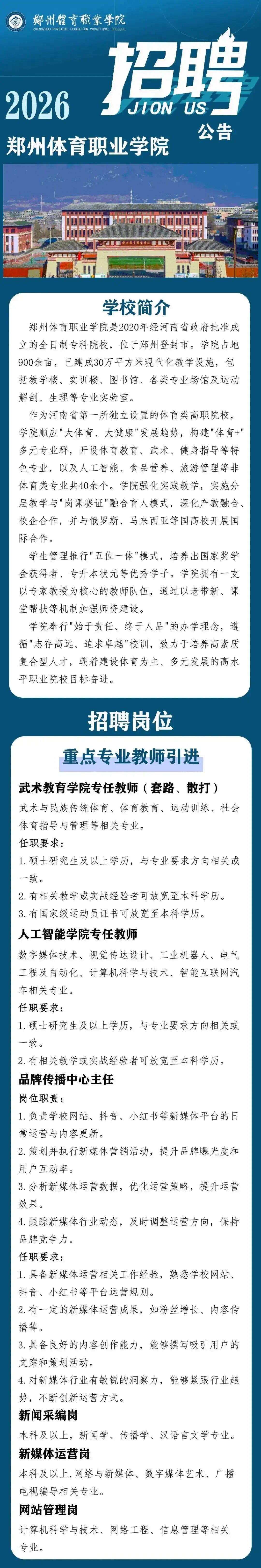 (本文已注明信息来源,保证信息真实性,提醒广大体育求职者不要轻信提前交费、包办工作等信息,谨防上当受骗)