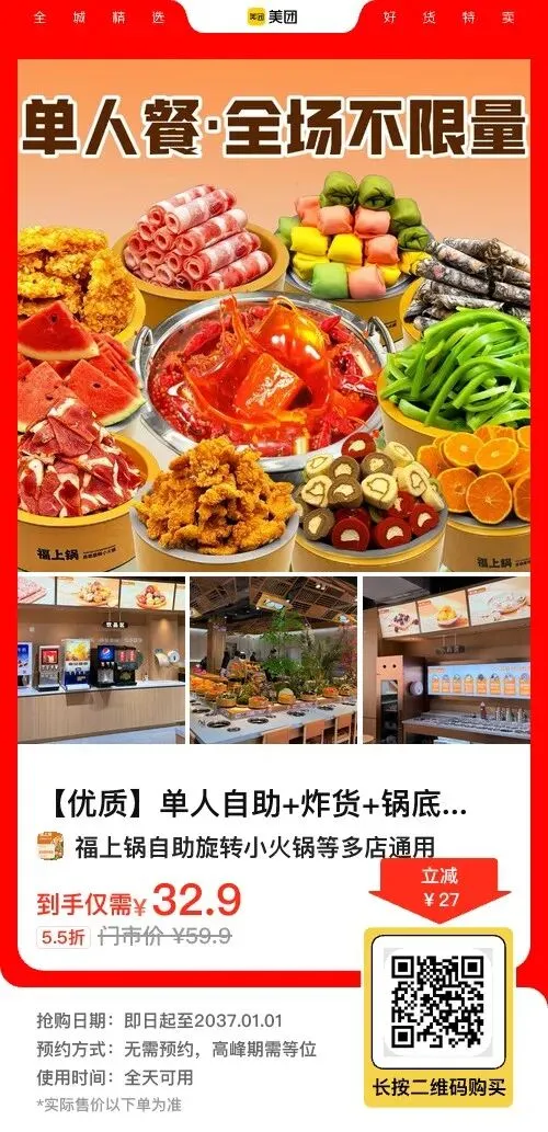 一个人吃饭不知道吃啥?🔥福上锅自助小火锅放大招,32.9元抢原价59.8元单人自助套餐~