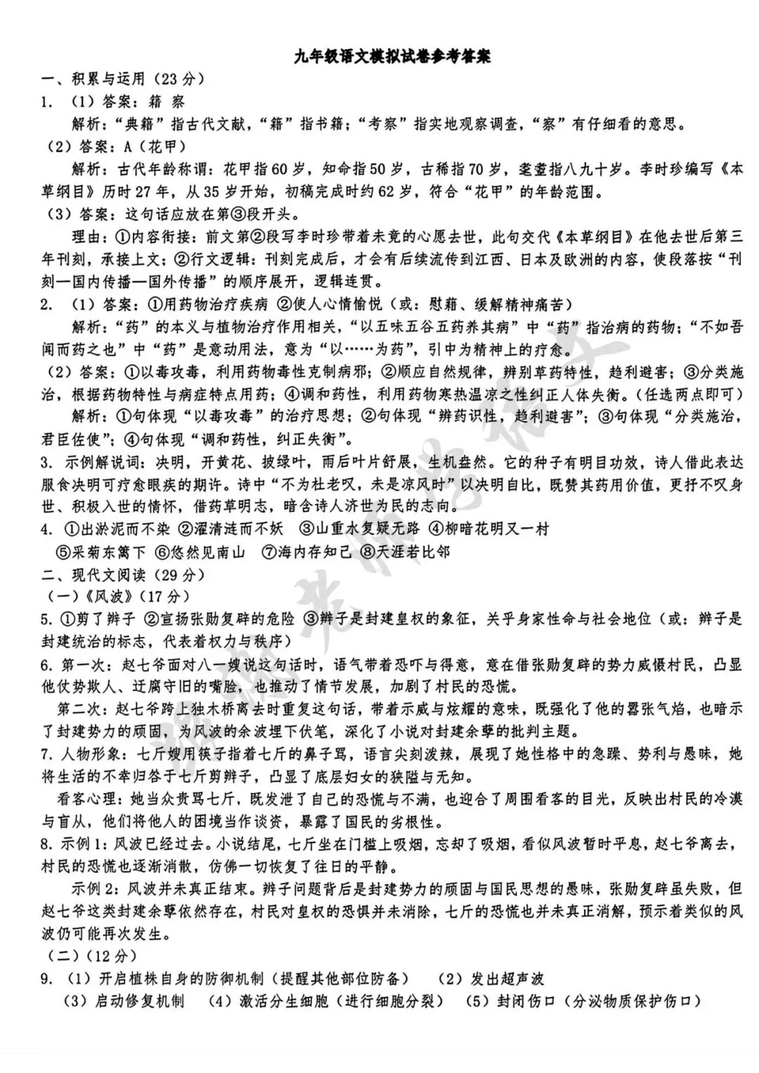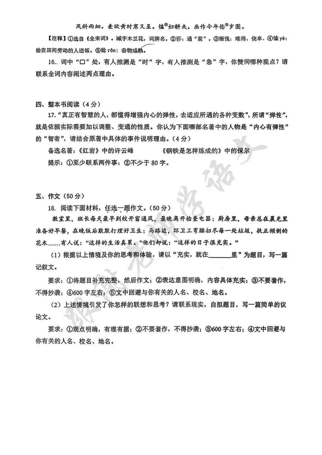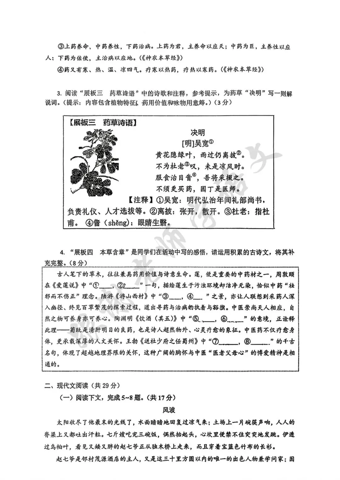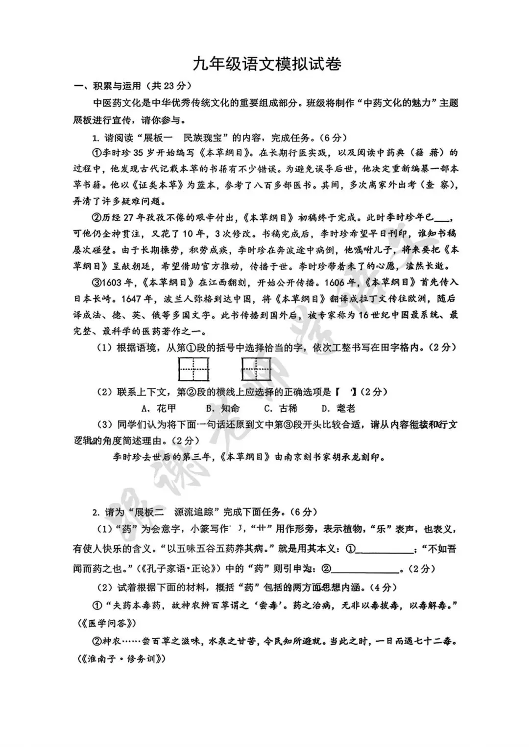 2026年信阳市中考一模语文试题及参考答案