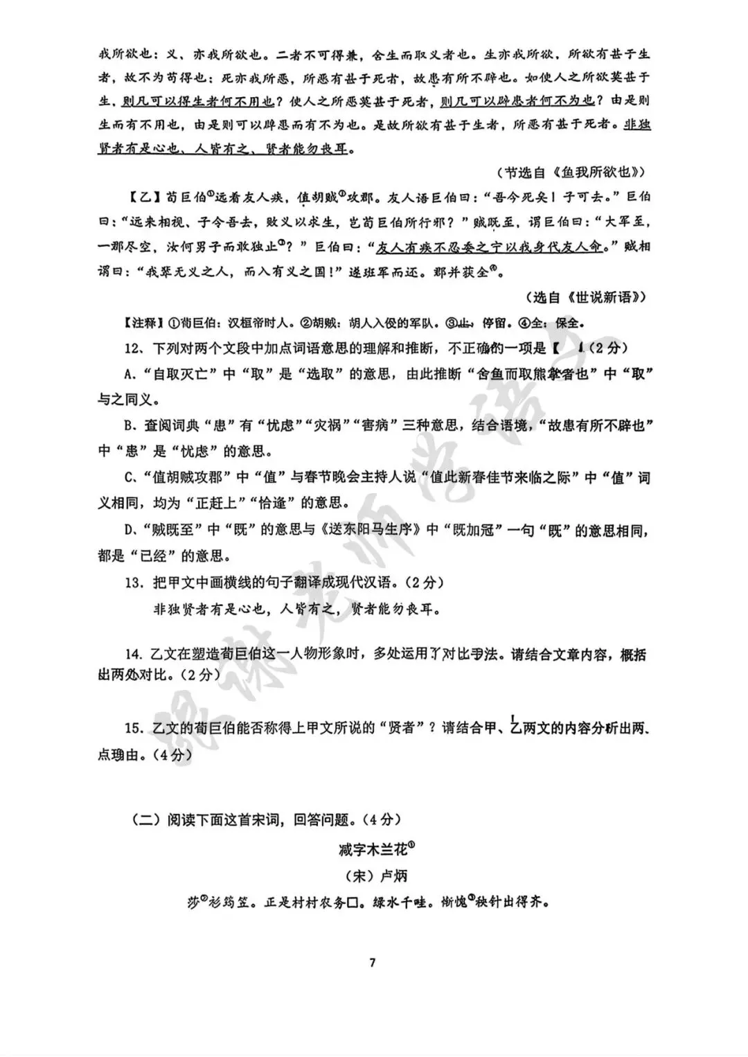 2026年郑州市枫杨外国语学校中考一模语文试题及参考答案