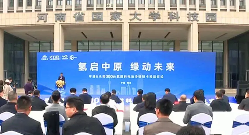 昨天,300台氢燃料电池冷链轻卡投运仪式在郑州高新区大学科技园举行,标志着郑州市氢能冷链物流迈入规模化运营新阶段。此次投运的300台氢燃料电池冷链轻卡,由宇通与未势能源联合研发。