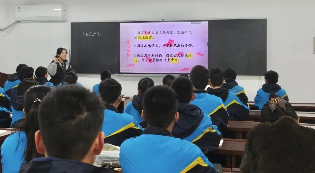 韩子英老师讲授《桃花源记》,以“心中的桃花源”为切入点,鼓励学生分享自己对理想世界的憧憬,有效激发了学习兴趣。课堂通过多样化朗读和小组讨论,让学生在诵读中品味语言,感悟桃源之美。